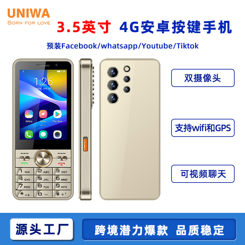 跨境3.5寸老年按键功能手机4g双卡双待谷歌商店老人安卓备用 手机