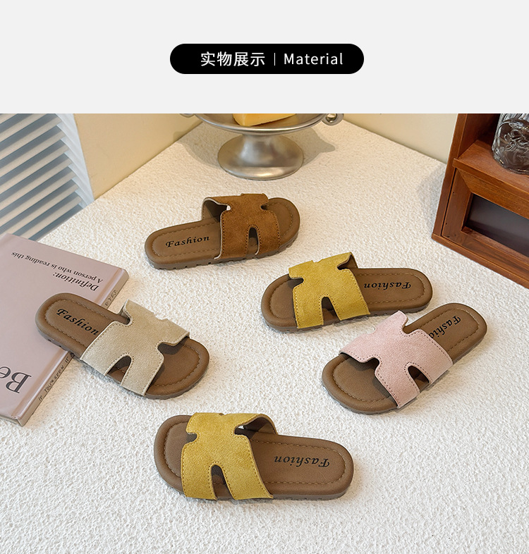 2025 여름 새로운 소녀 슬리퍼 패션 캐주얼 신발 비치 어린이 신발 프로스트 가죽 한 단어 상점 도매 헤어스토어 가기