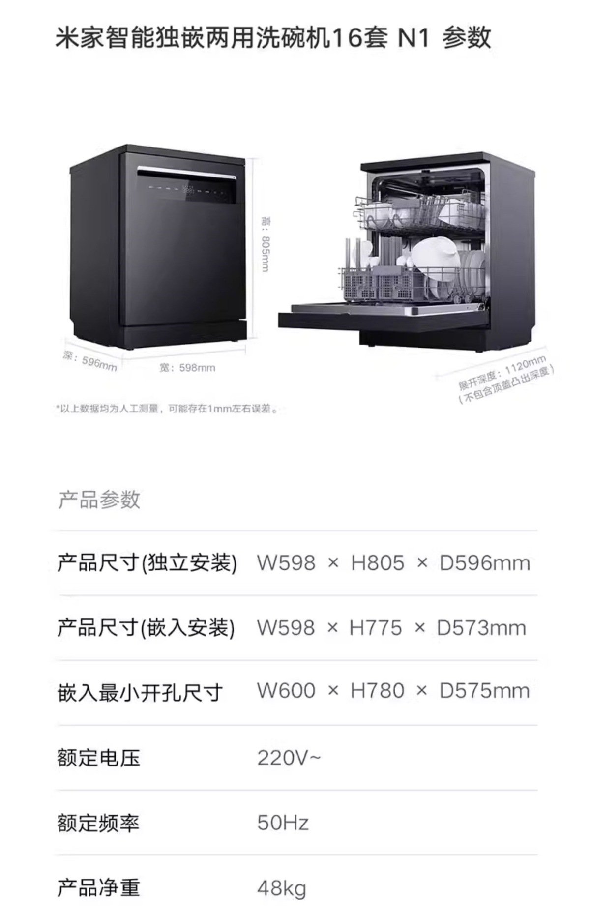 • Mijia 스마트 독립형 이중 목적 식기세척기 16세트 N1