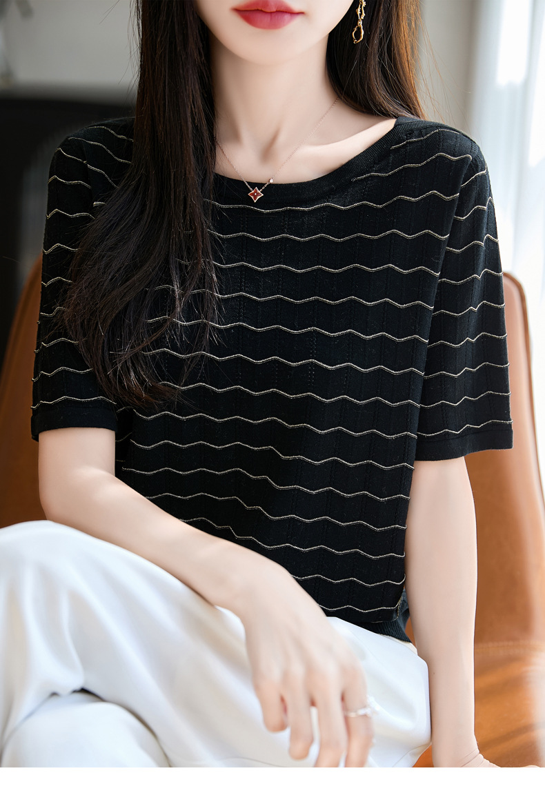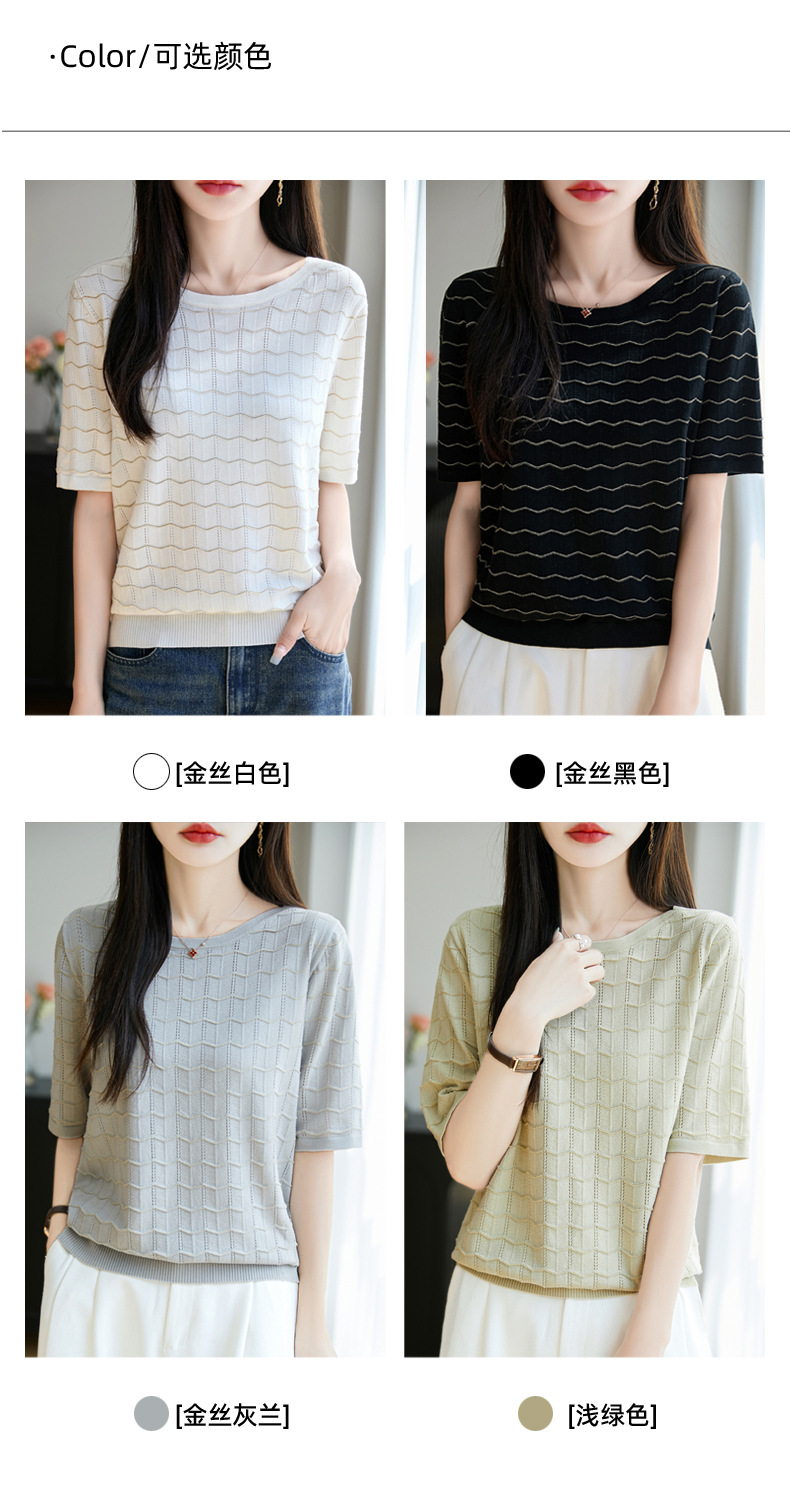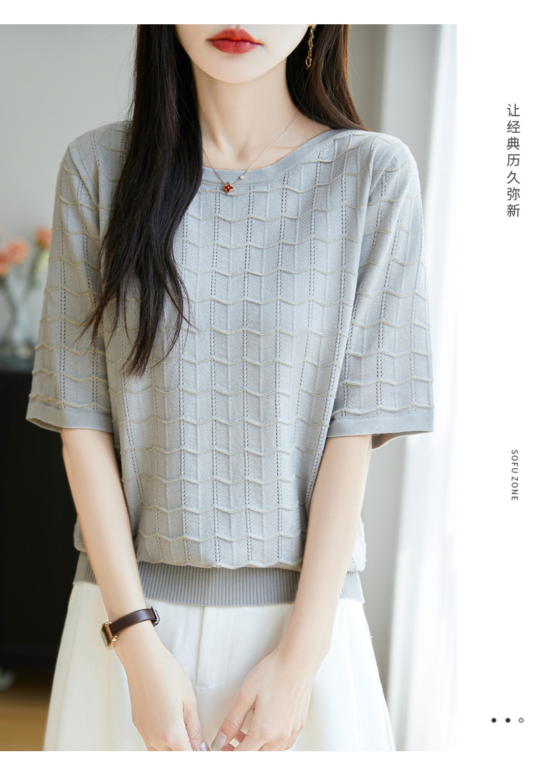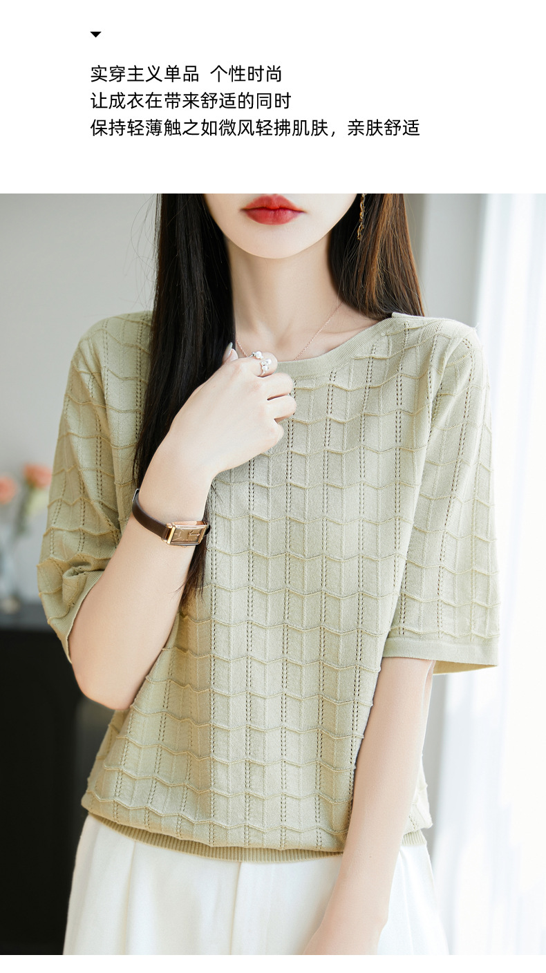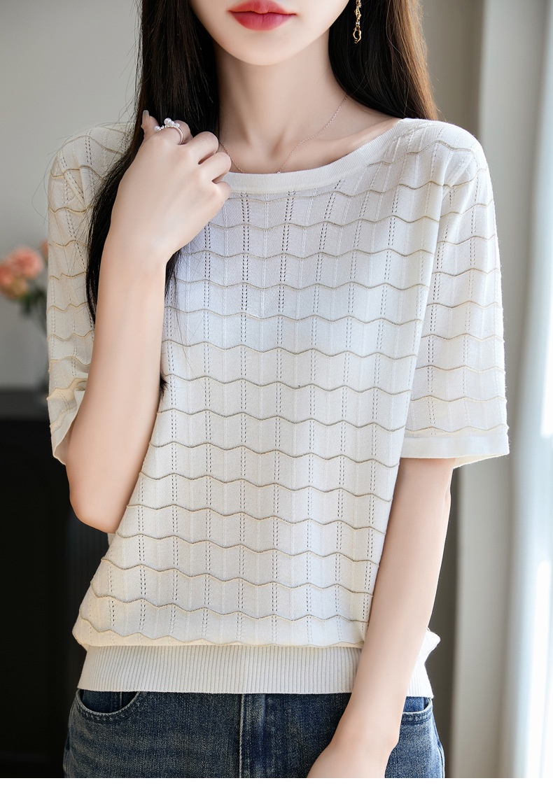 여름 쿨 텐셀 Lyocell 웨이브 우아한 캐주얼 반팔 여성용 솔리드 컬러 라운드 넥 느슨한 슬리밍 올 매치 탑
