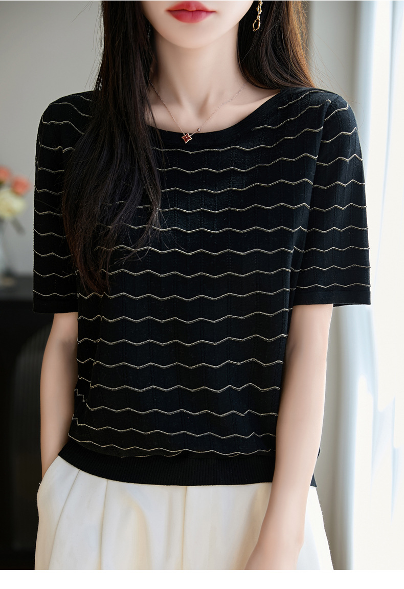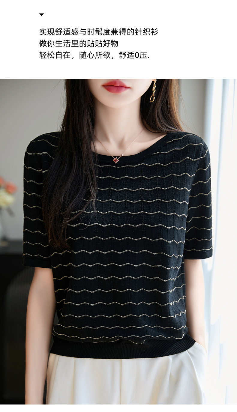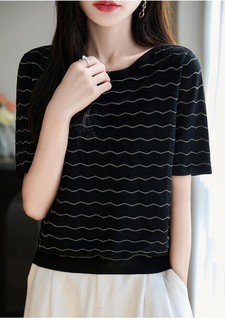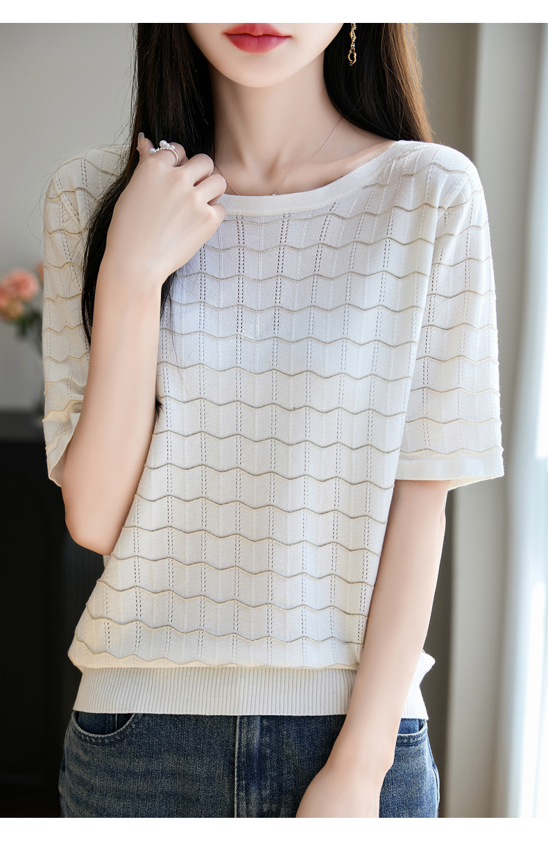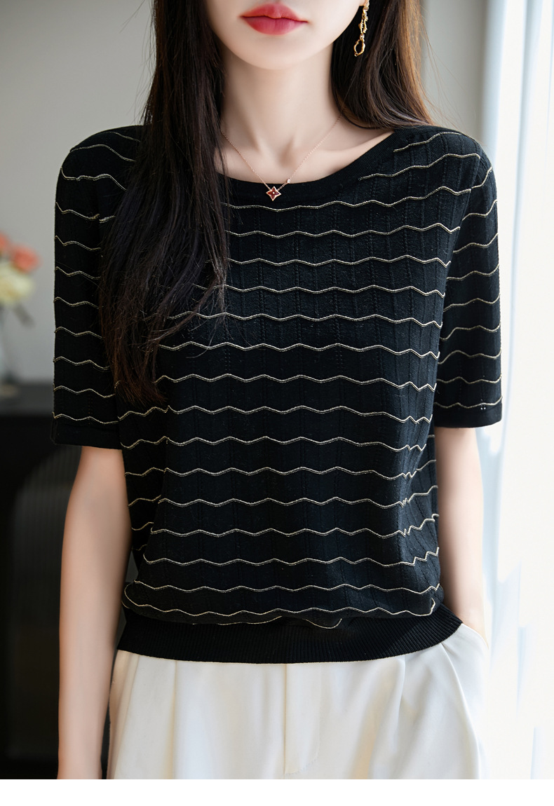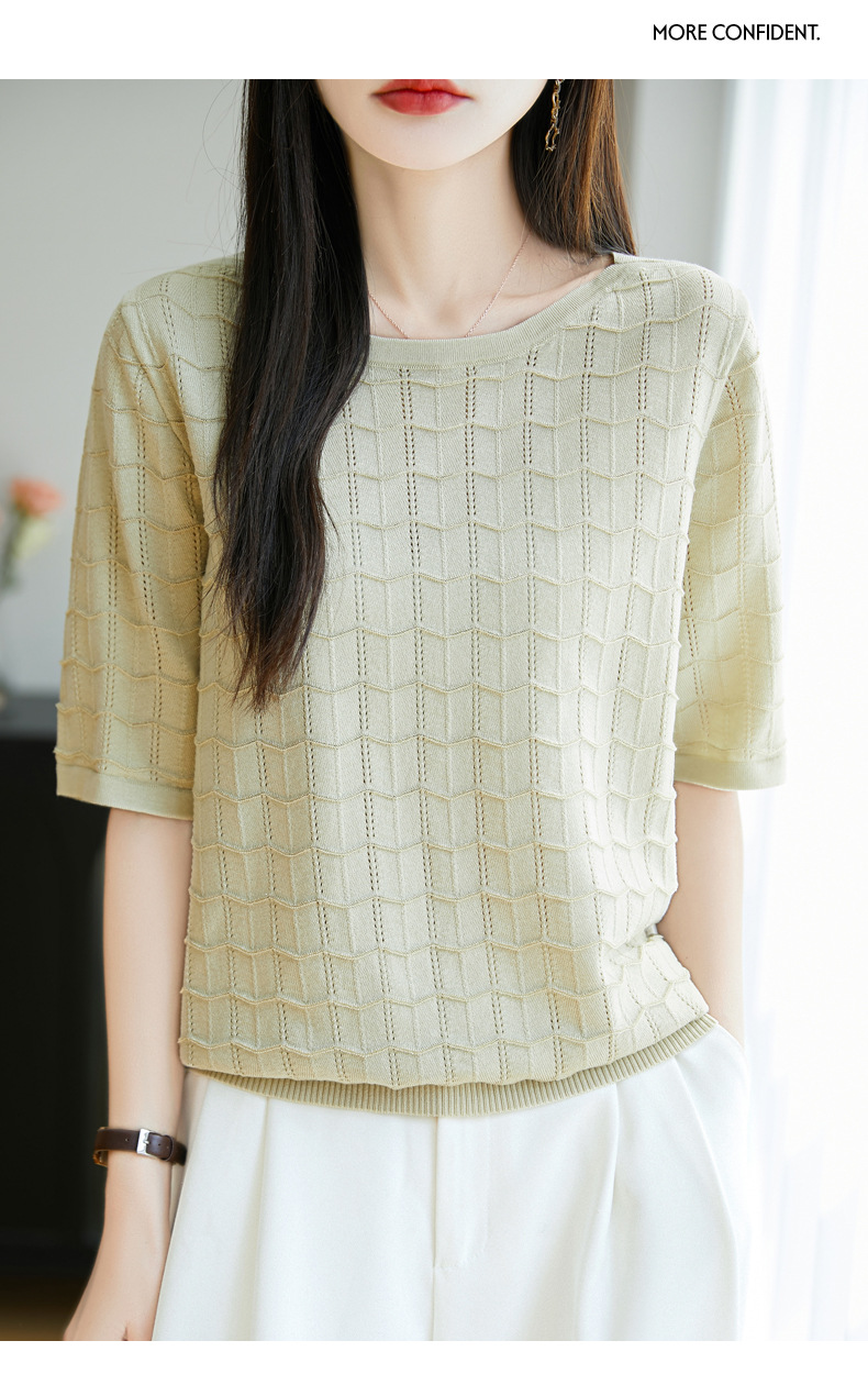 여름 쿨 텐셀 Lyocell 웨이브 우아한 캐주얼 반팔 여성용 솔리드 컬러 라운드 넥 느슨한 슬리밍 올 매치 탑