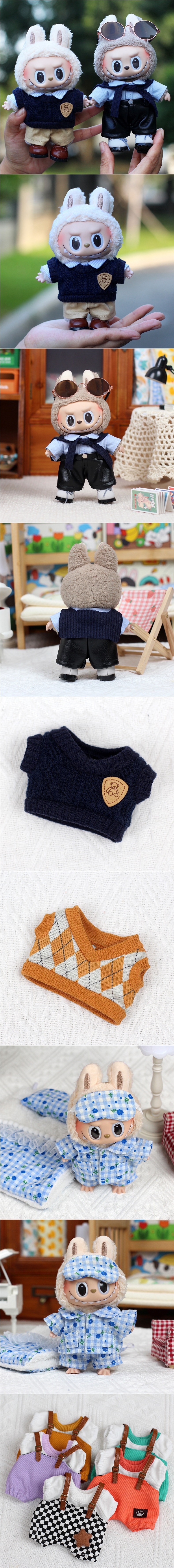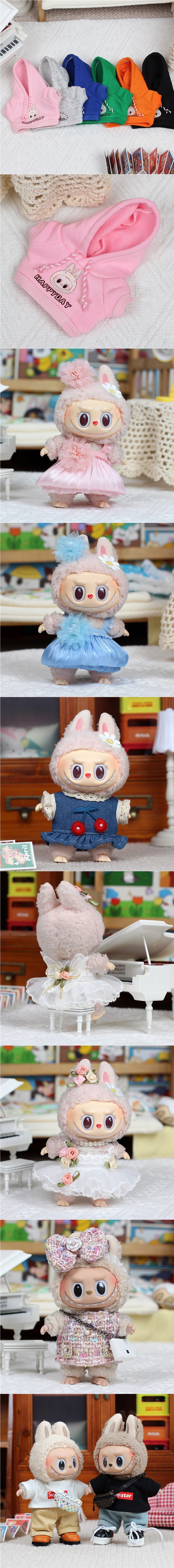 유일한 옷] 라부부 인형 옷 17cm labubu 옷 하트 마카롱 비닐 얼굴 인형 옷
