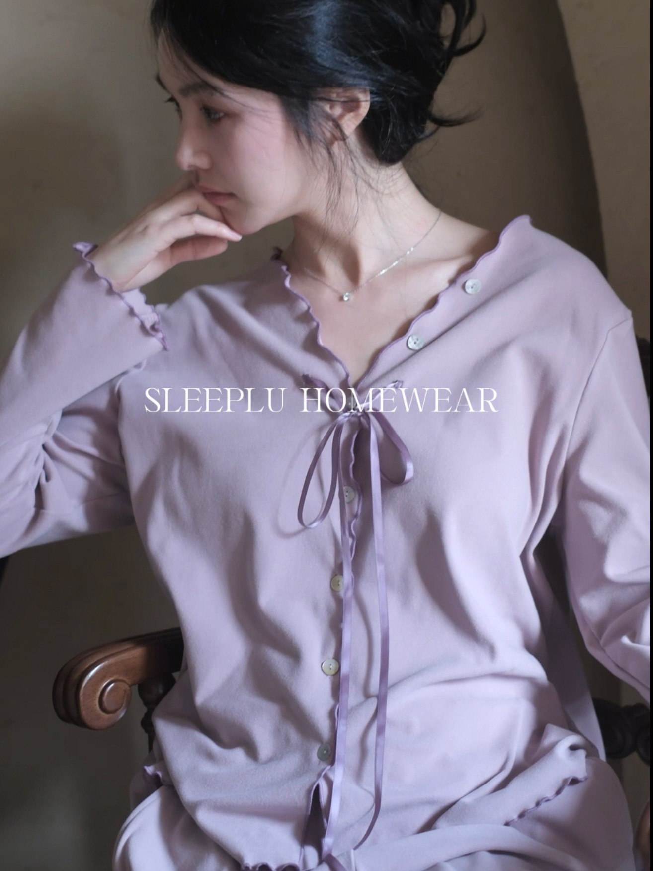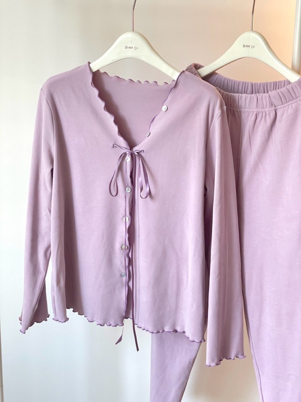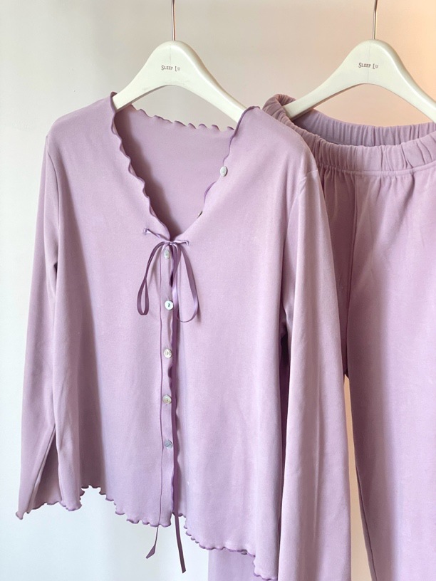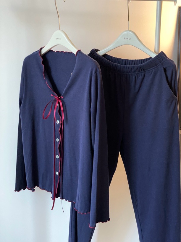 〈발레 소녀〉가을 겨울 기모 데론 잠옷 여성용 레이스 브이넥 긴팔 긴바지 홈웨어 세트스토어 가기