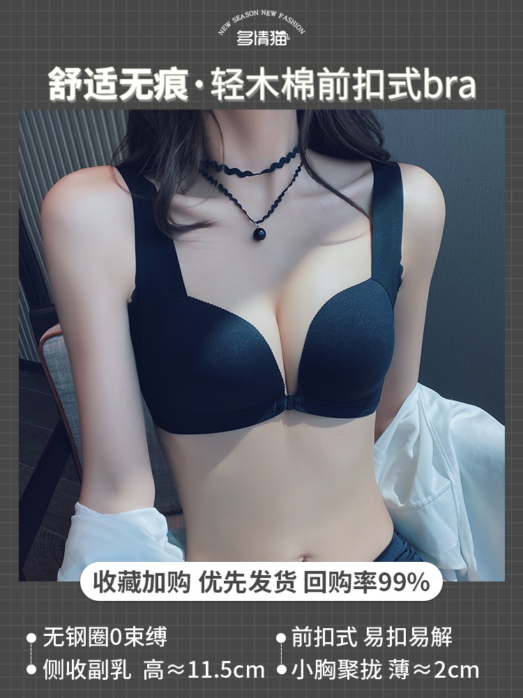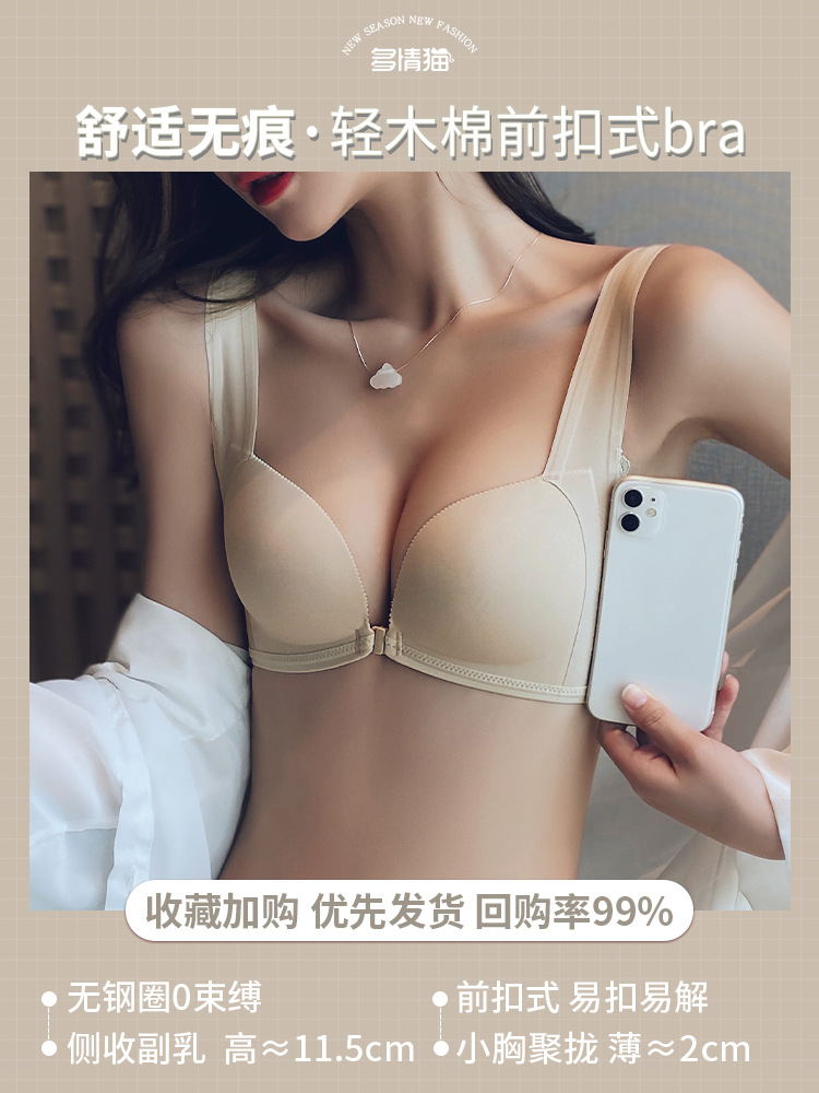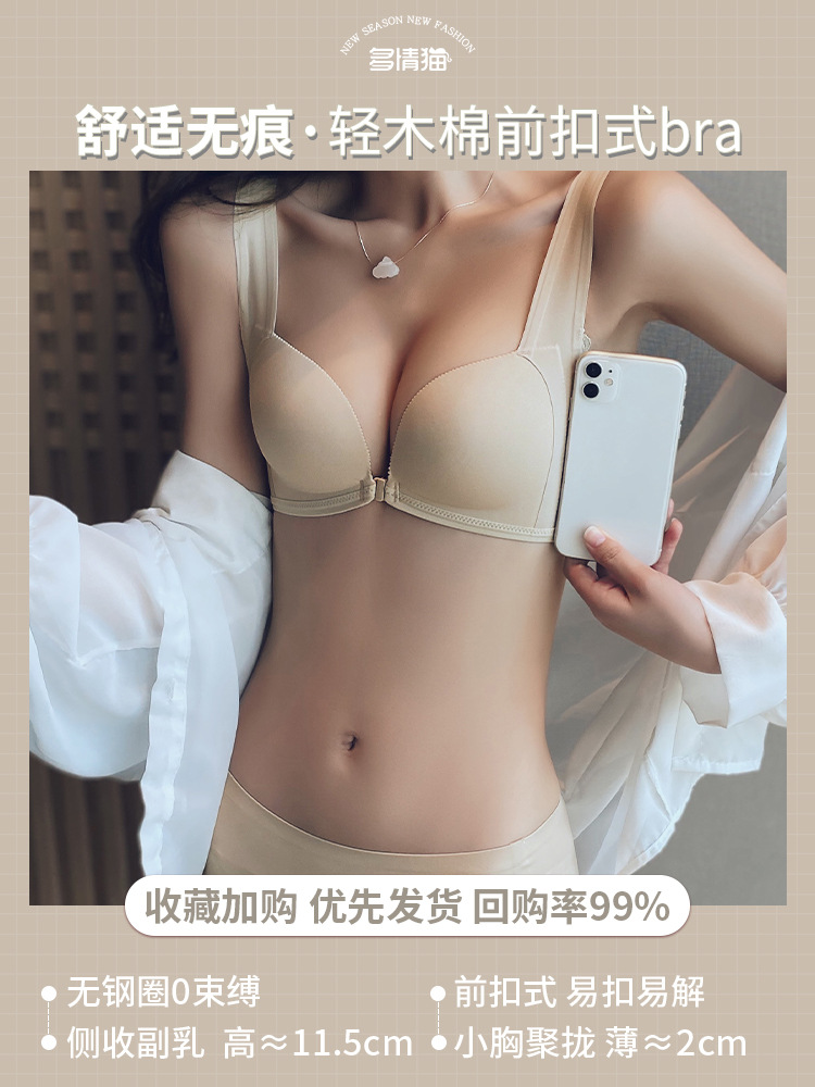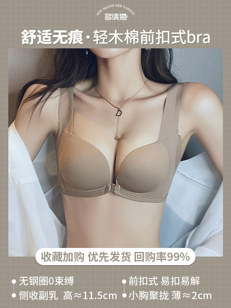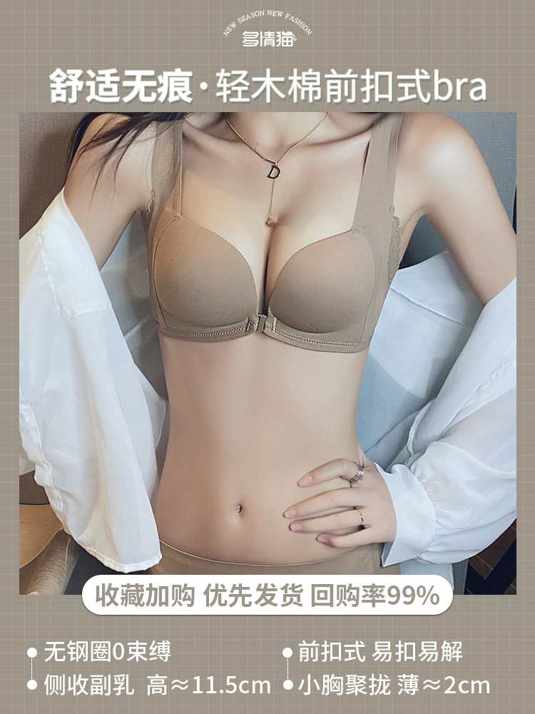 여성용 조절 가능한 앞 버튼 속옷, 사랑스러운 고양이 2025 새로운 얇은 작은 가슴 푸시 업 섹시한 심리스 브라스토어 가기