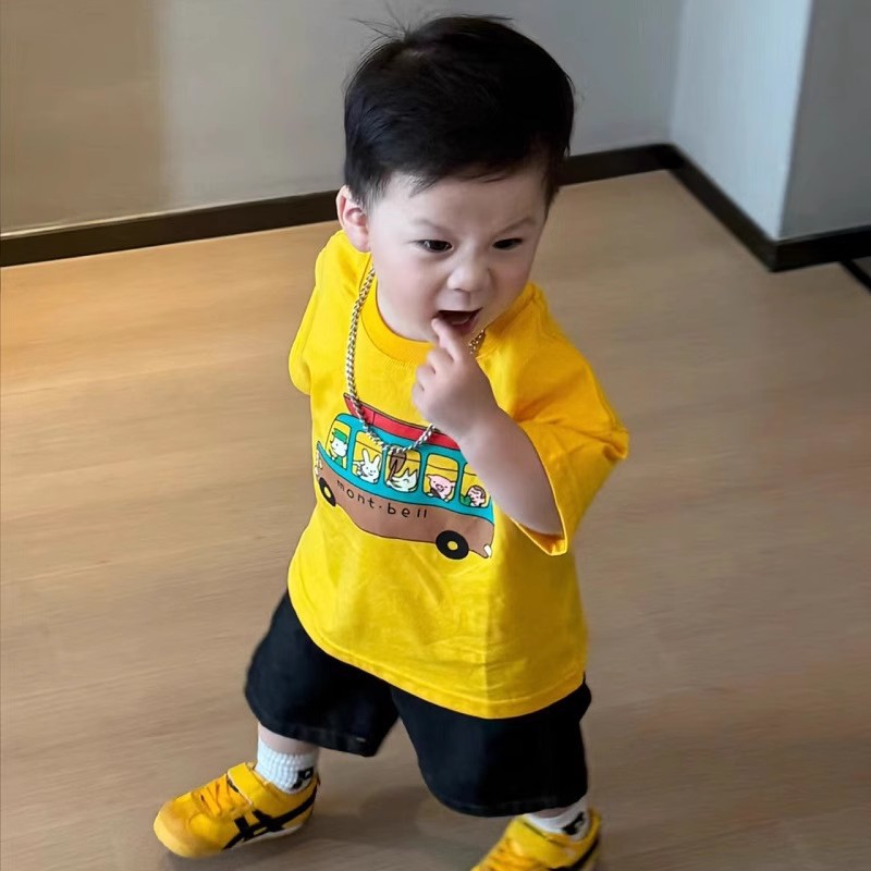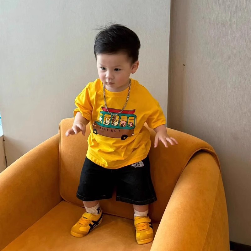어린이 2026년 신상 여름 한국 스타일 중소형 아동용 만화 프린트 남아 여아 순면 반팔 티셔츠 상의