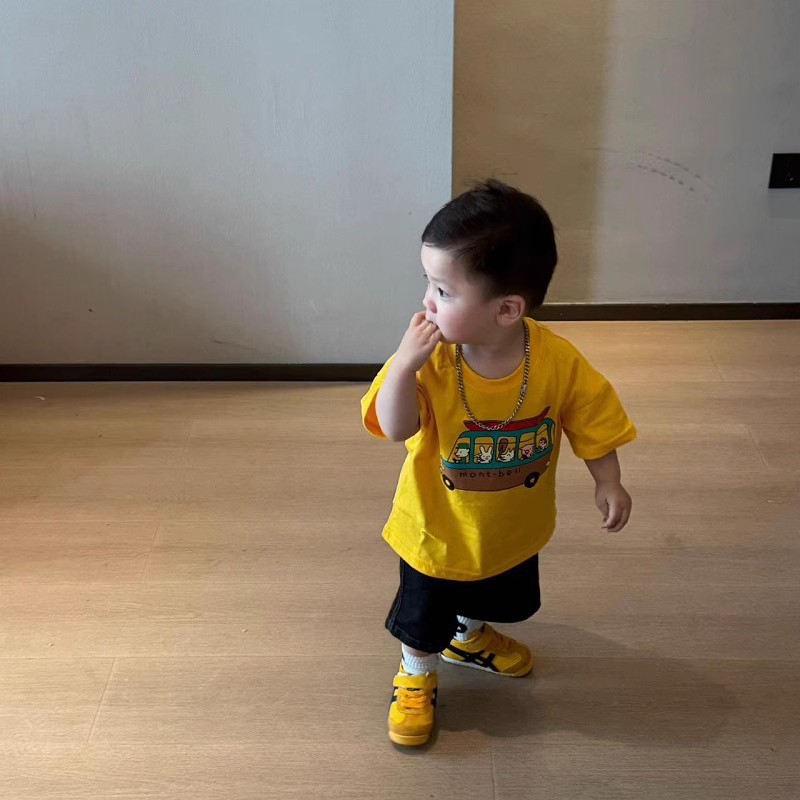 어린이 2026년 신상 여름 한국 스타일 중소형 아동용 만화 프린트 남아 여아 순면 반팔 티셔츠 상의스토어 가기