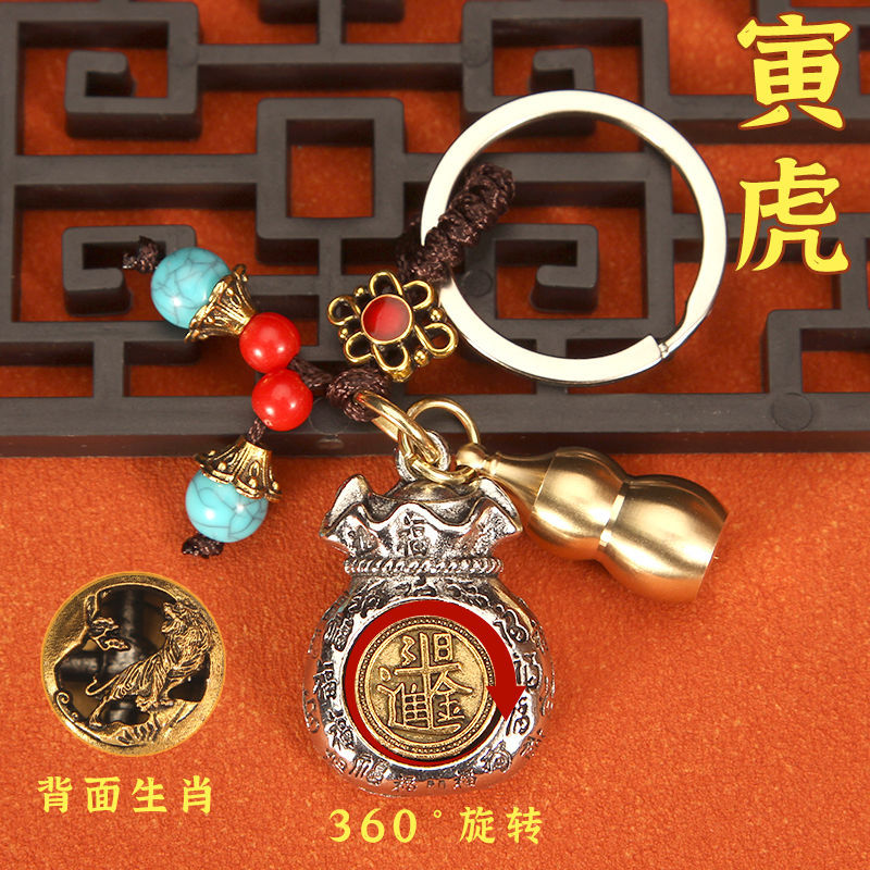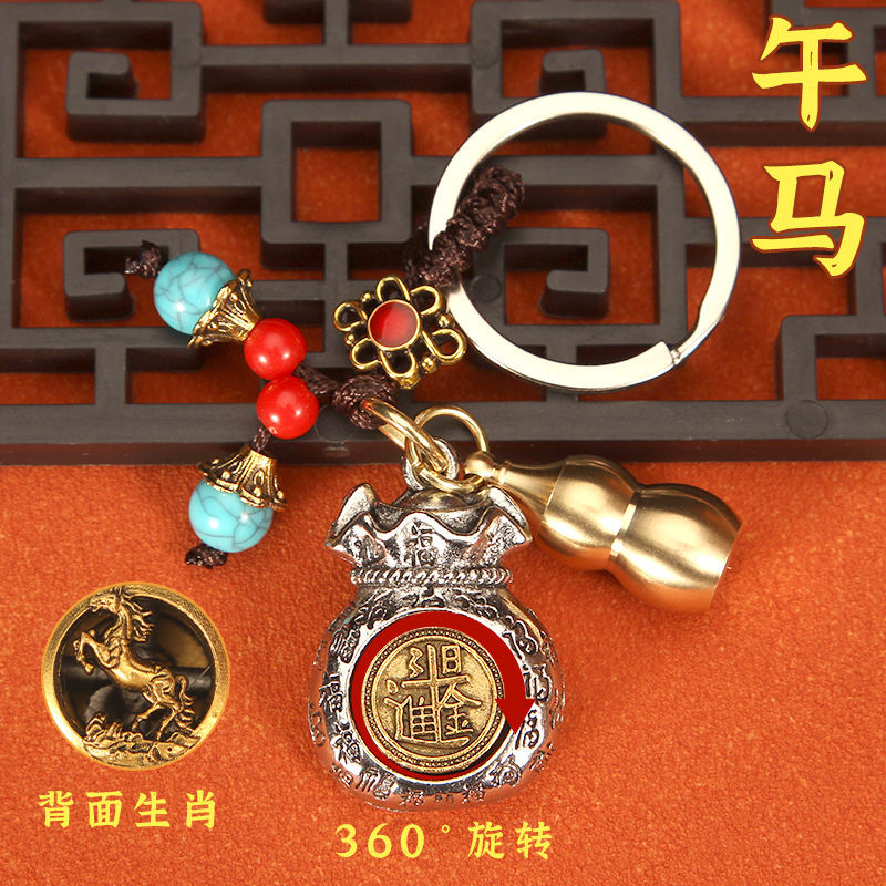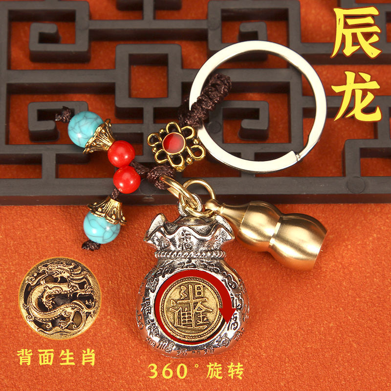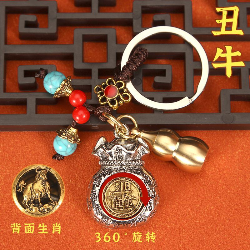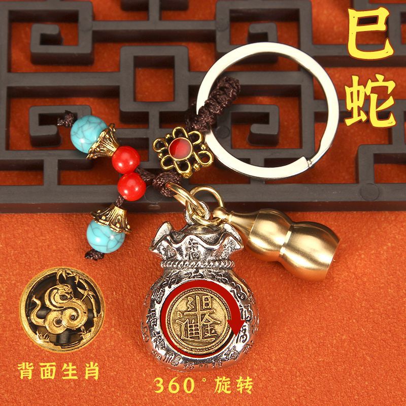 리 진 두 골드 조롱박 바이 푸 머니 백 조디악 턴 키 체인 남성 자동차 펜던트 전송 교수형 보석스토어 가기