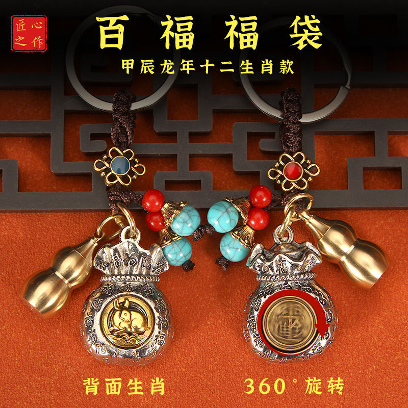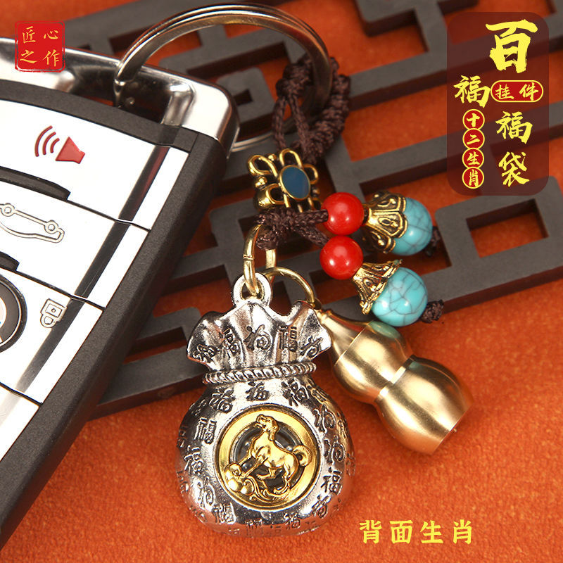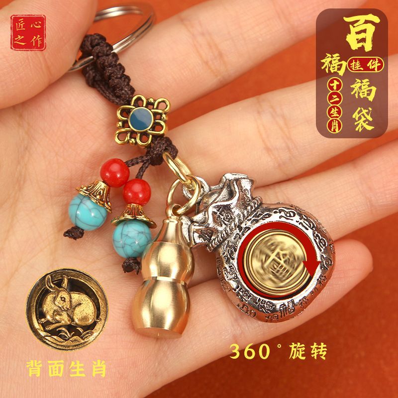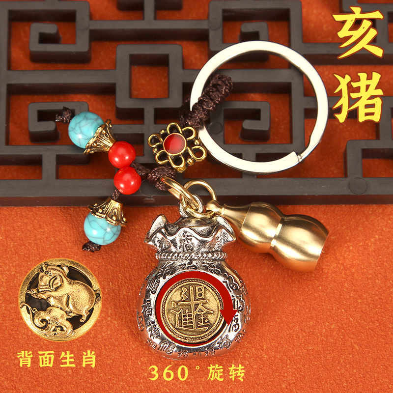 리 진 두 골드 조롱박 바이 푸 머니 백 조디악 턴 키 체인 남성 자동차 펜던트 전송 교수형 보석