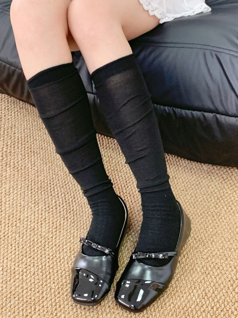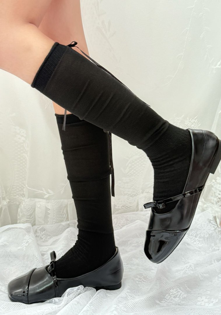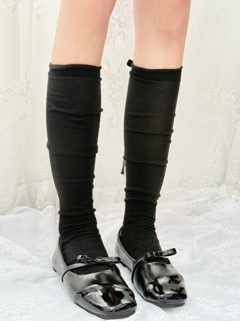 봄과 여름 발레 스타일 리본 한 단어 Jk 양말 가열 된 활 마이크로 침투 송아지 양말 여성 소녀의 달콤한 더미 양말