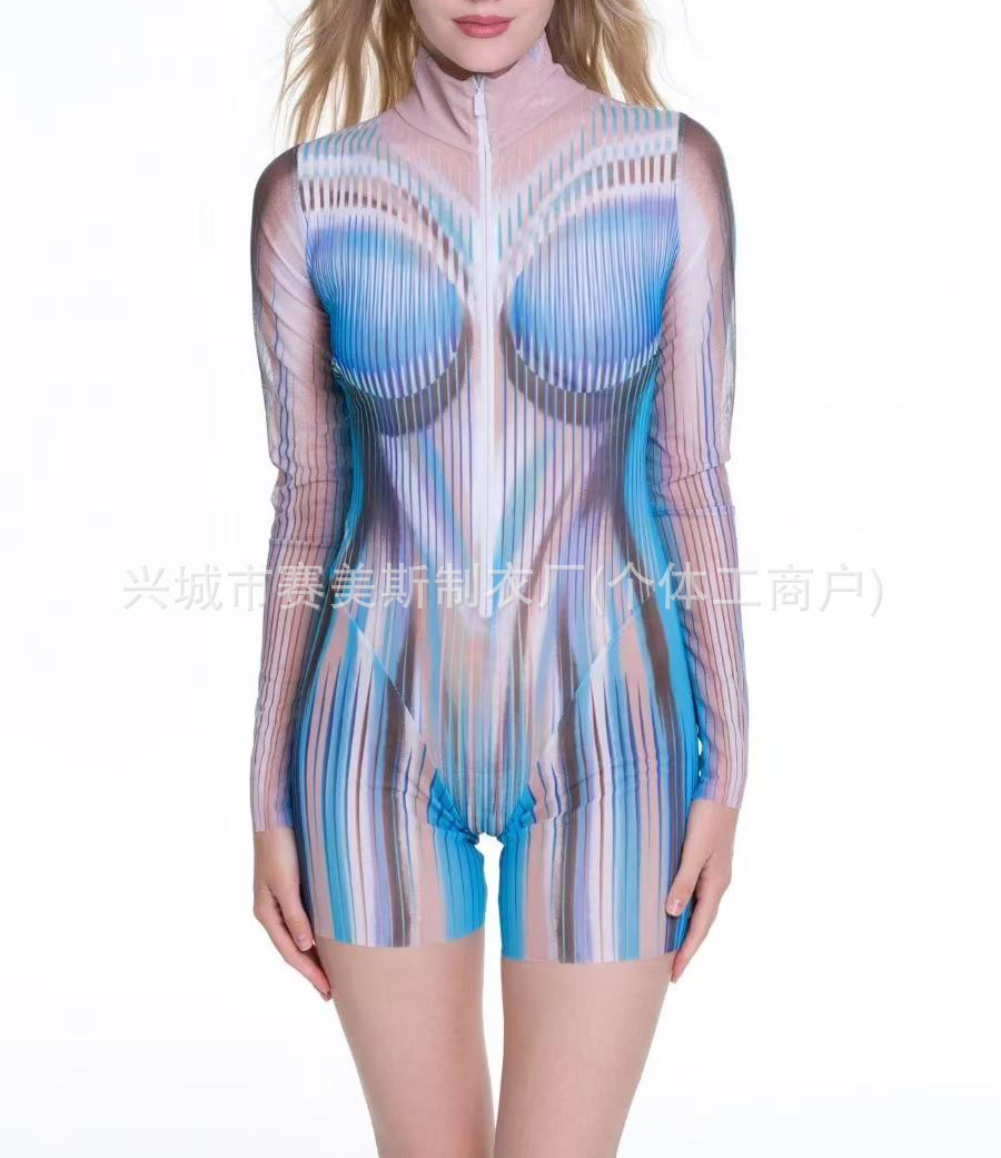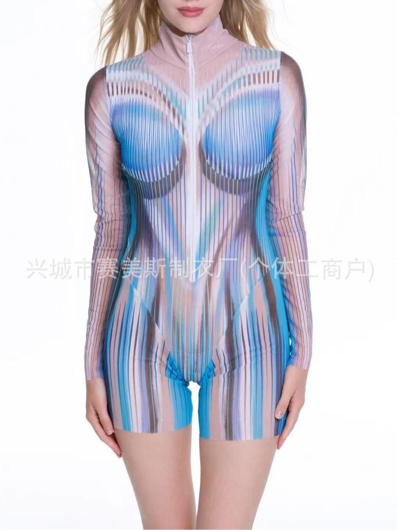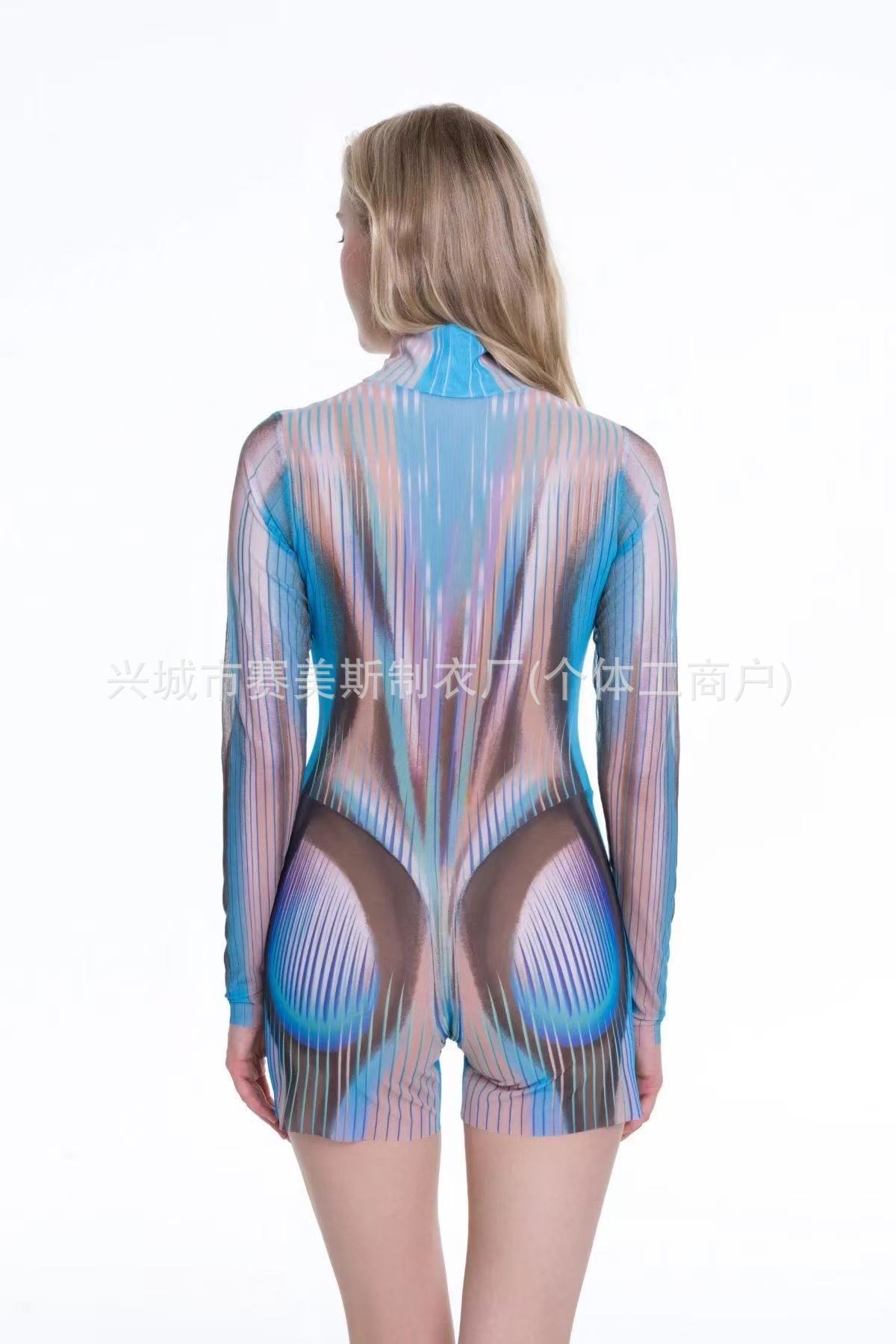 러시아 인쇄 섹시한 원피스 서핑 세트 아마존 긴팔 수영복 크로스 보더 오존 복서 수영복 여성