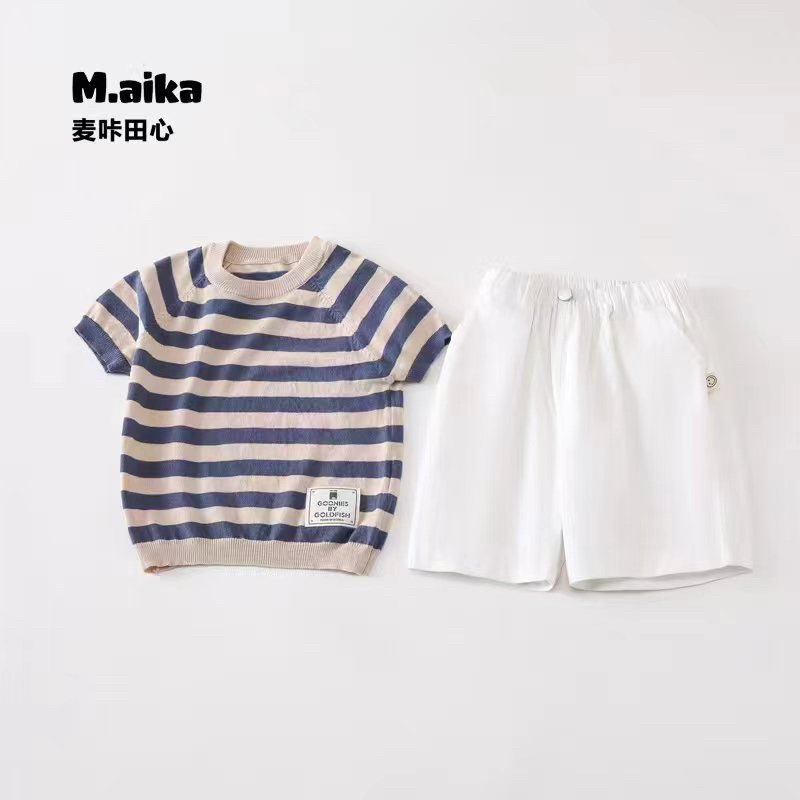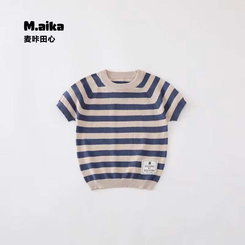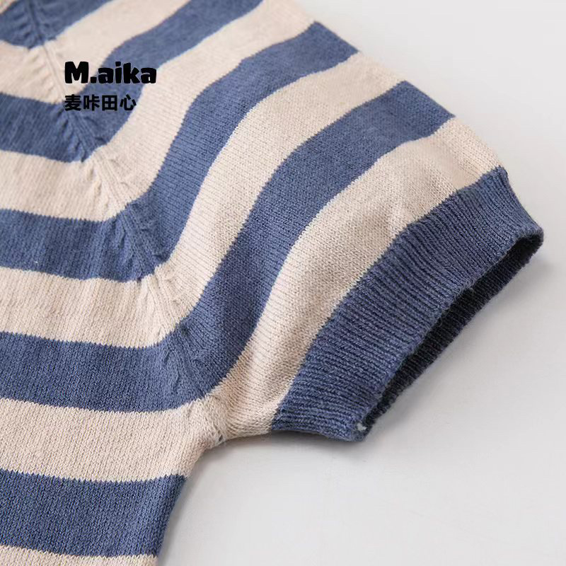 507 여름 아동복 아동 스트라이프 한국 스타일 라운드 넥 캐주얼 스타일 면사 스웨터 여름 옷 아기 다용도스토어 가기