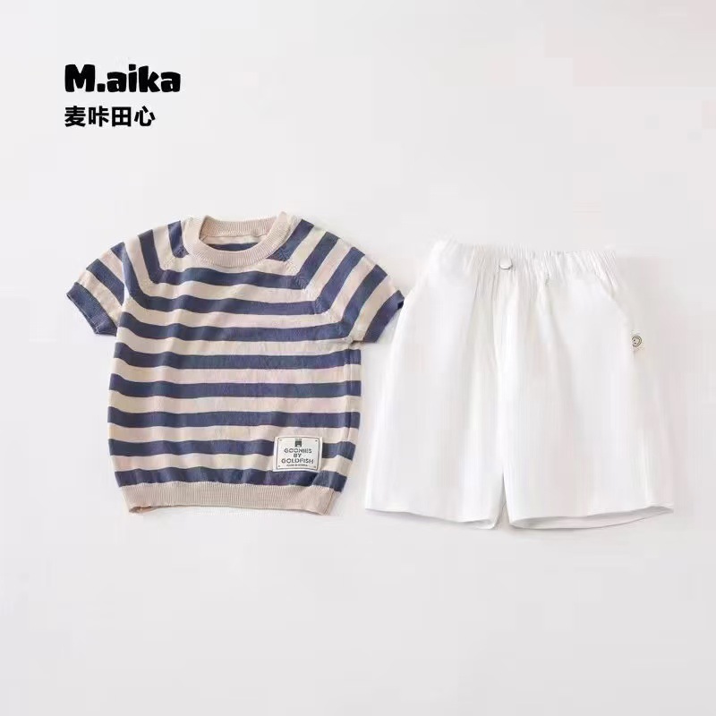 507 여름 아동복 아동 스트라이프 한국 스타일 라운드 넥 캐주얼 스타일 면사 스웨터 여름 옷 아기 다용도