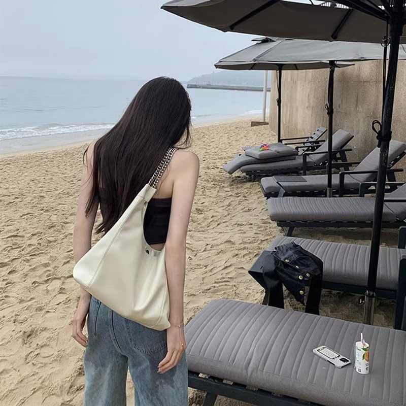 게으른 스타일 부드러운 가죽 토트 백 2023 새로운 유행 하이 엔드 여름 어깨 가방 언더암 가방 체인 스트레이 백스토어 가기