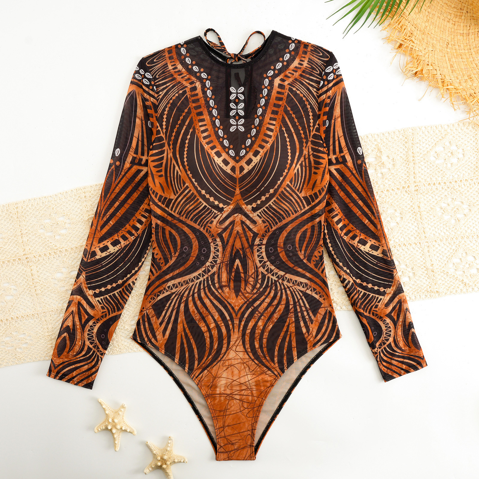 여성의 새로운 유럽 및 미국 국경 긴팔 선 스크린 수영복 Купальник 러시아 스포츠 비키니스토어 가기