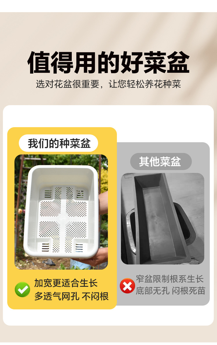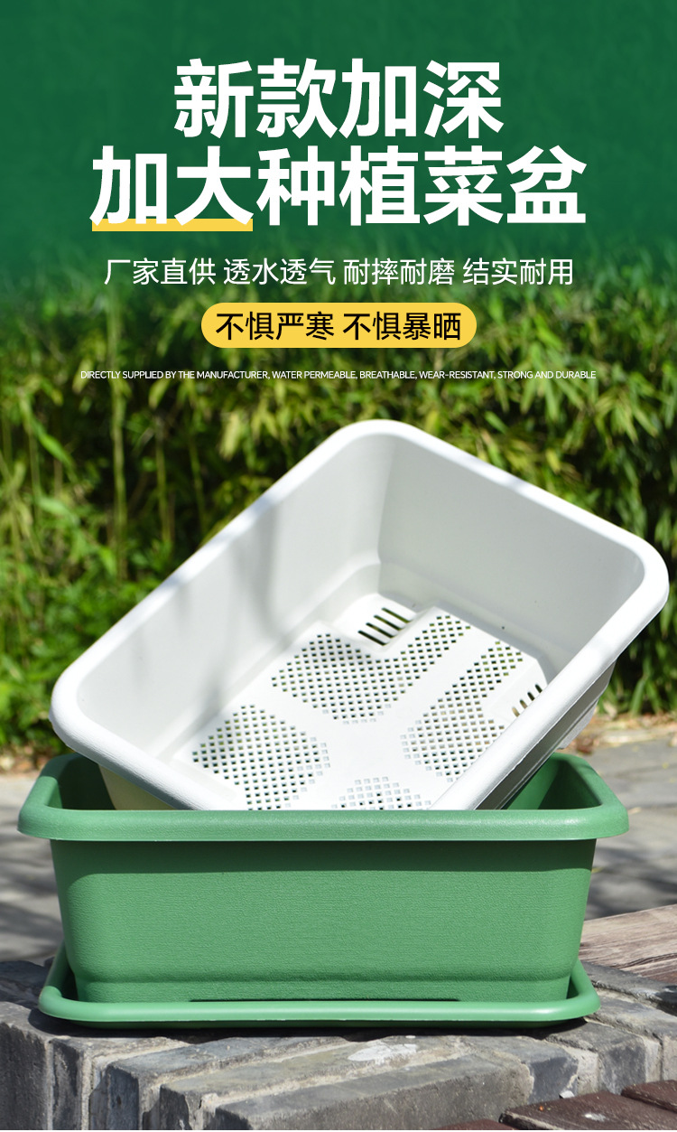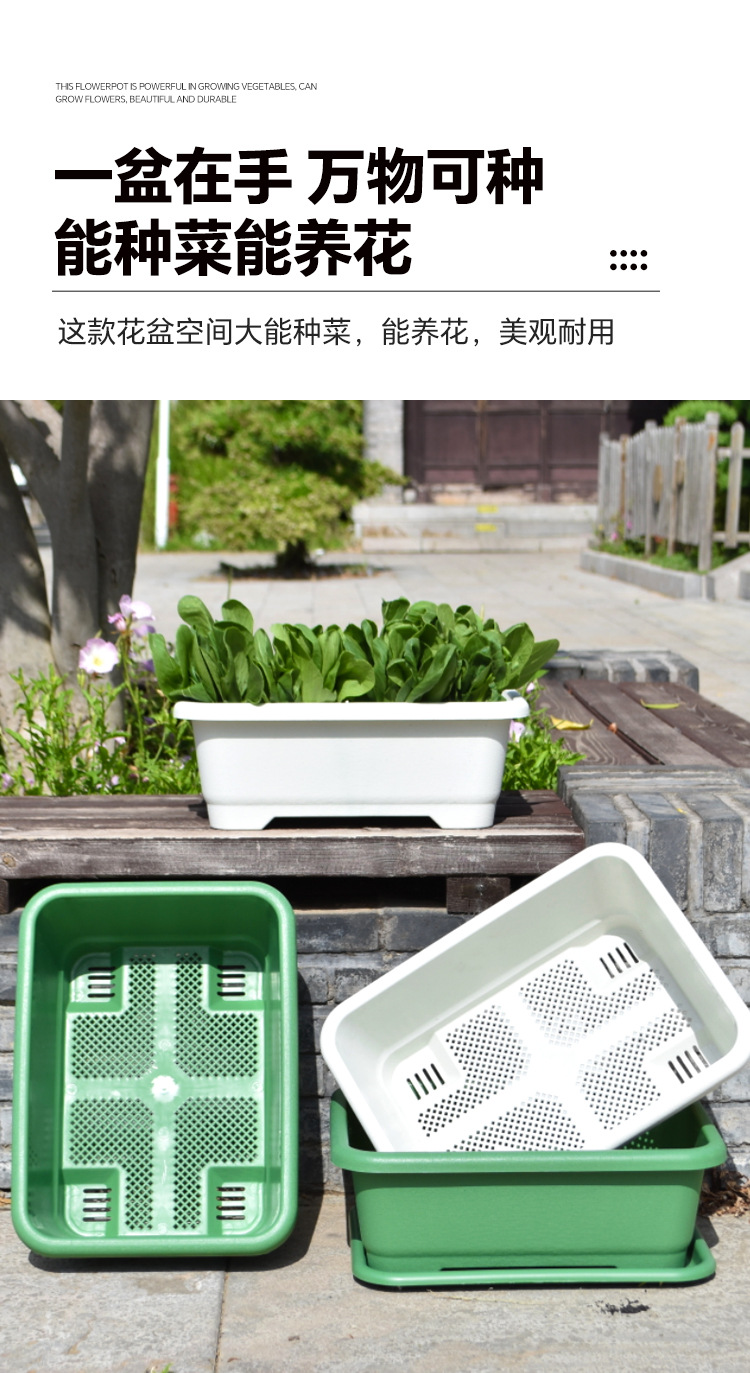 두꺼운 야채 냄비 테이블 긴 사각 플라스틱 냄비 가정용 야채 심기 냄비 야채 성장을위한 특수 대형 내구성 꽃 냄비