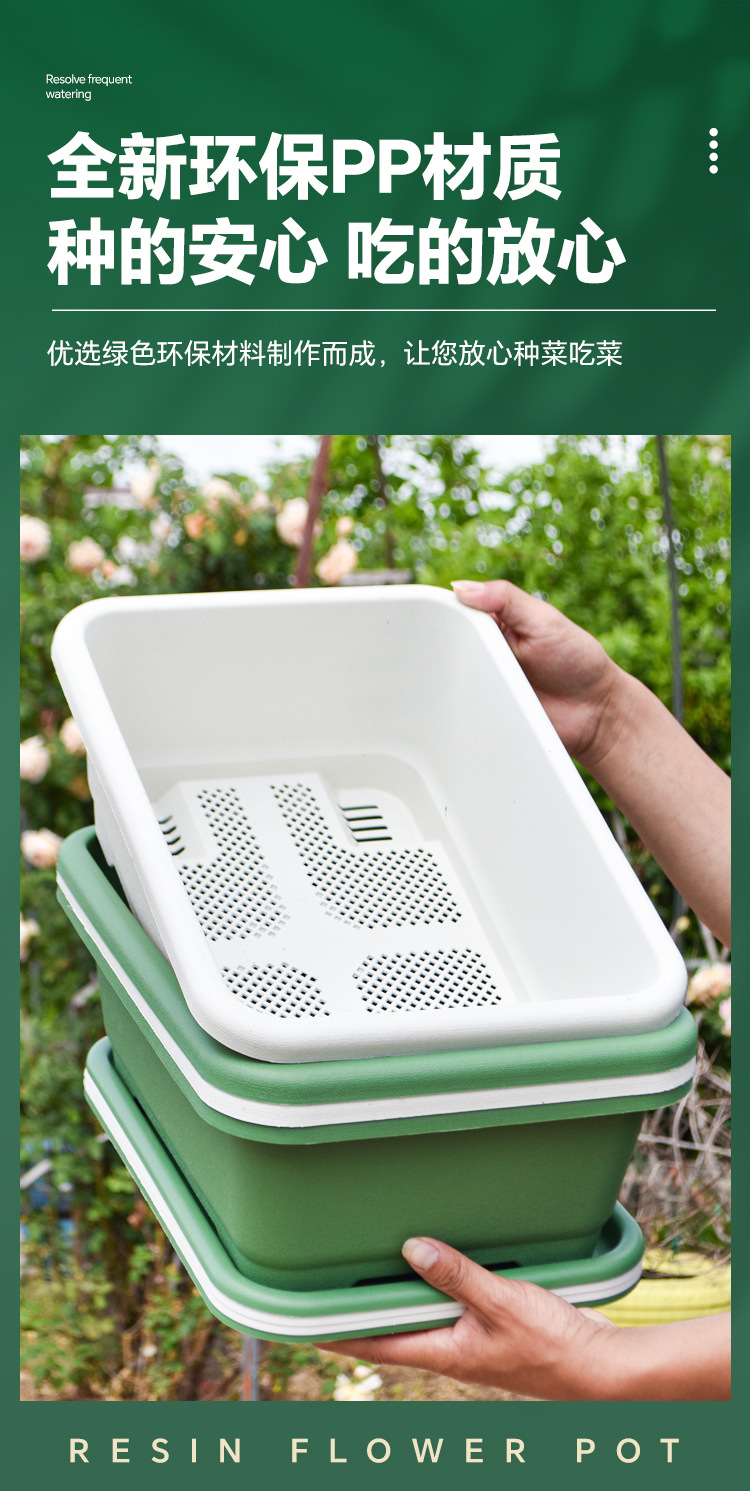 두꺼운 야채 냄비 테이블 긴 사각 플라스틱 냄비 가정용 야채 심기 냄비 야채 성장을위한 특수 대형 내구성 꽃 냄비스토어 가기