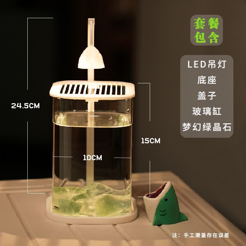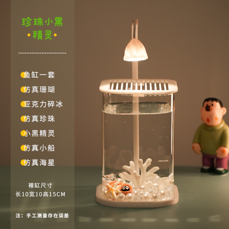 鱼缸斗鱼专用超白小型懒人玻璃缸客厅创意桌面摆件高级感观赏灯