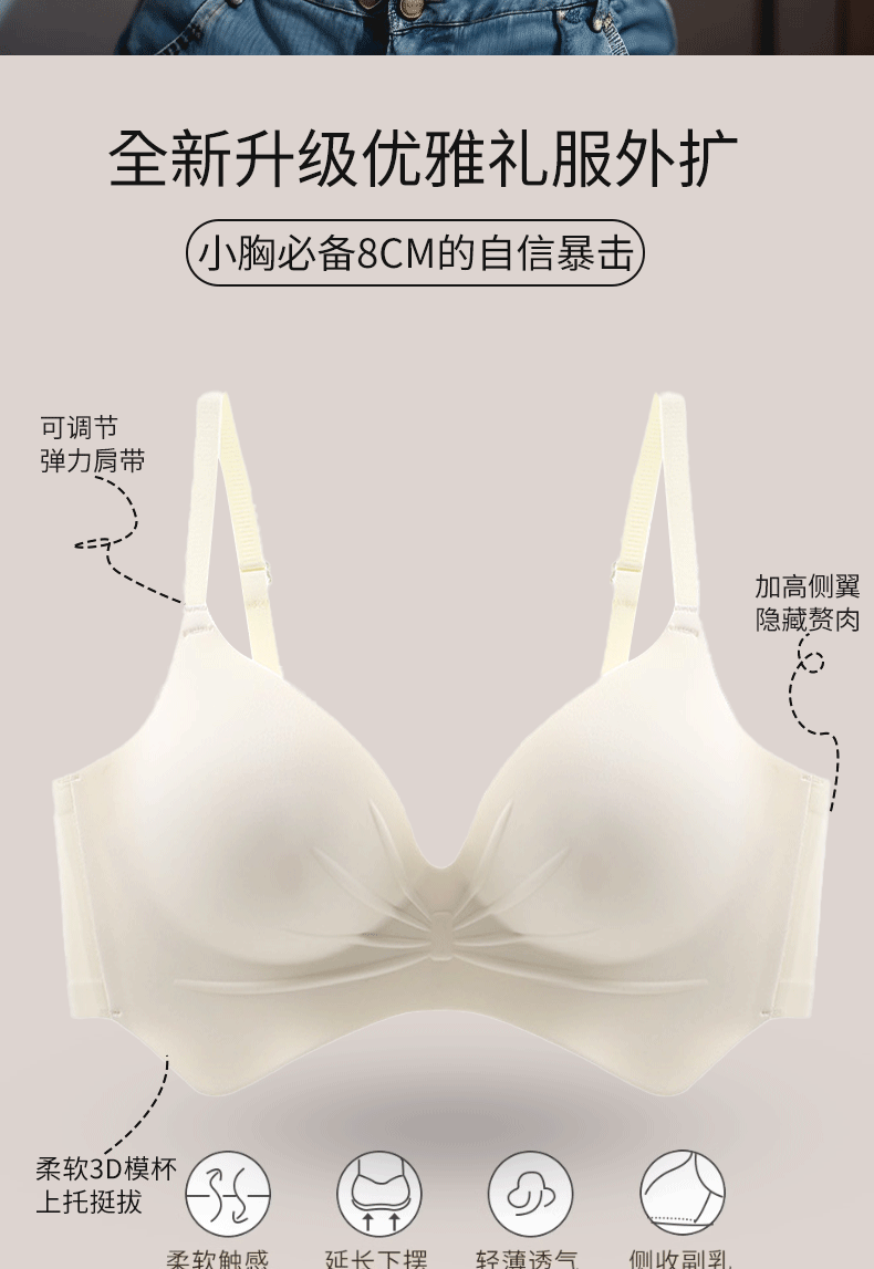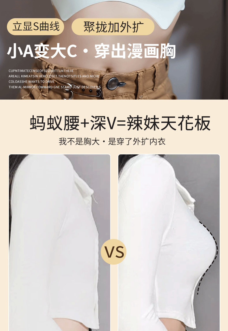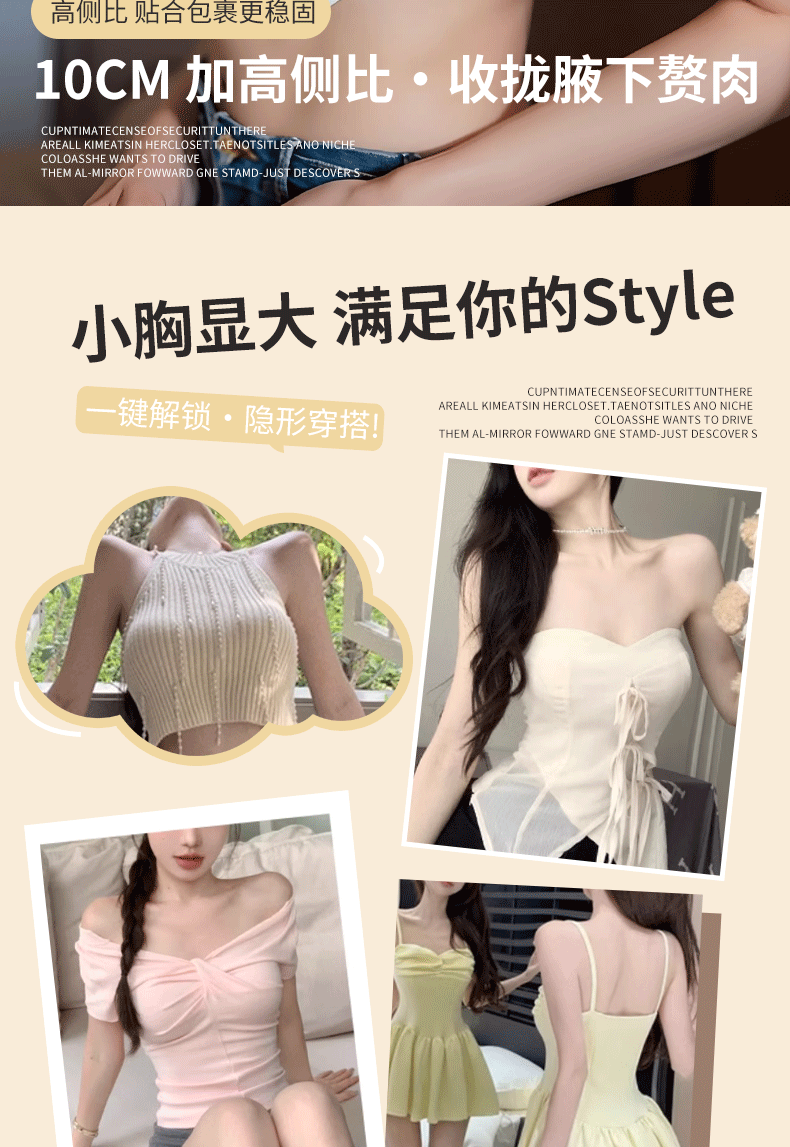 여성용 초두꺼운 8CM 코믹 가슴 확장 속옷, 와이어 없음, 흔적 없음, 두꺼워지고 가슴과 허리가 더 크게 보이고 8CM 고정 가능