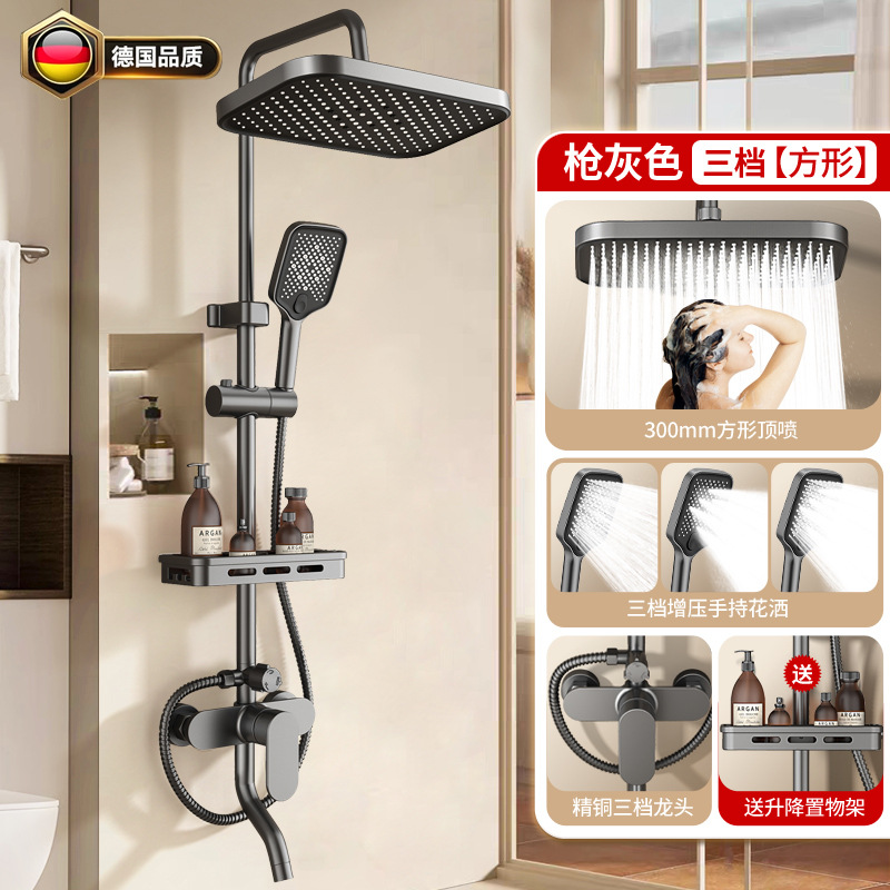 • 건 그레이(물 배출구 3개) 13inch 사각 고급 구리 샤워 세트