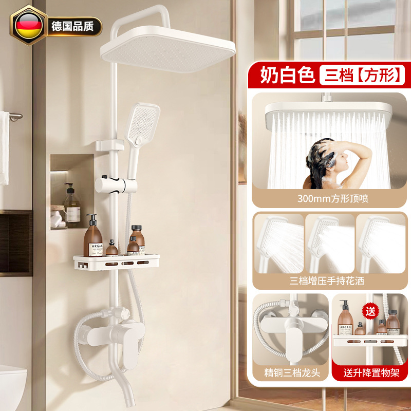 • 밀키 화이트(물 배출구 3개) 13inch 사각 미세 구리 샤워 세트