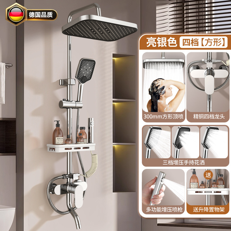 • 밝은 은색(물 배출구 4개) 13inch 정사각형 미세 구리 샤워 세트