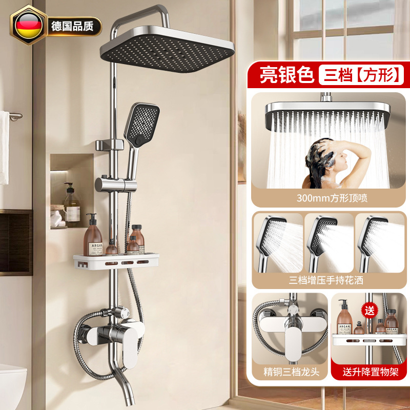 • 밝은 은색(물 배출구 3개) 13inch 정사각형 미세 구리 샤워 세트