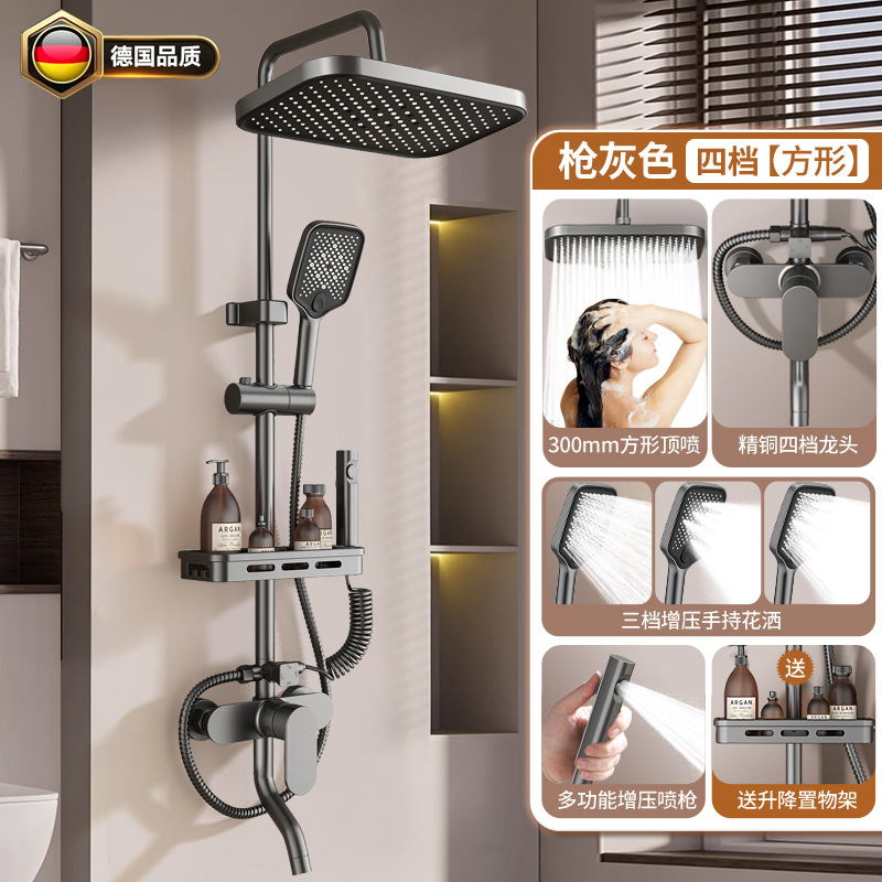 • 건 그레이(물 배출구 4개) 13inch 사각 고급 구리 샤워 세트