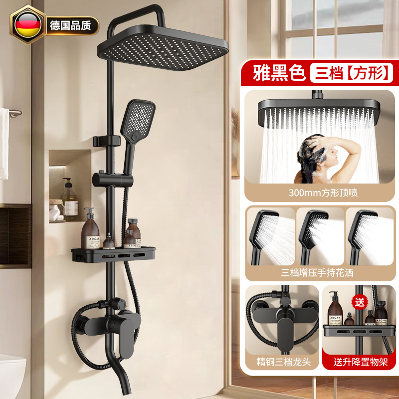 • 우아한 블랙(물 배출구 3개) 13inch 사각 고급 구리 샤워 세트
