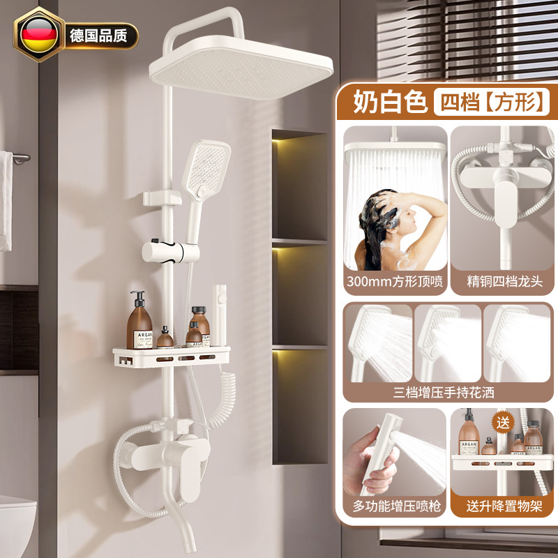 • 밀키 화이트(물 배출구 4개) 13inch 정사각형 미세 구리 샤워 세트