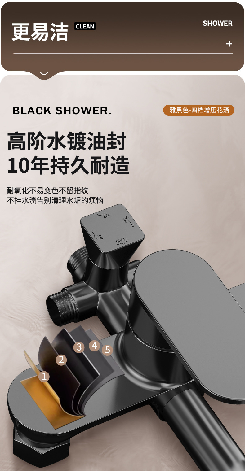• 우아한 블랙(3구) 10inch라운드 고급 구리 샤워 세트