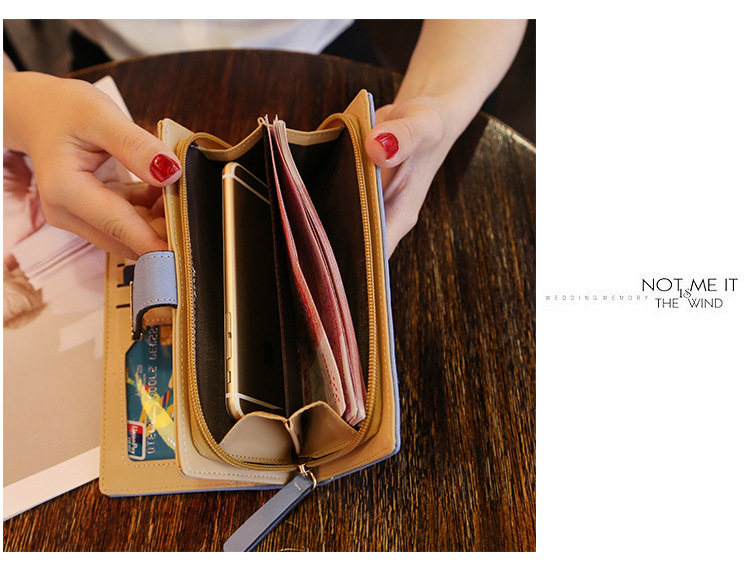 국경 간 여성용 지갑 스위트 레이디 PU 가죽 수평 지퍼 가방 소녀의 긴 휴대용 중공 잎 동전 지갑