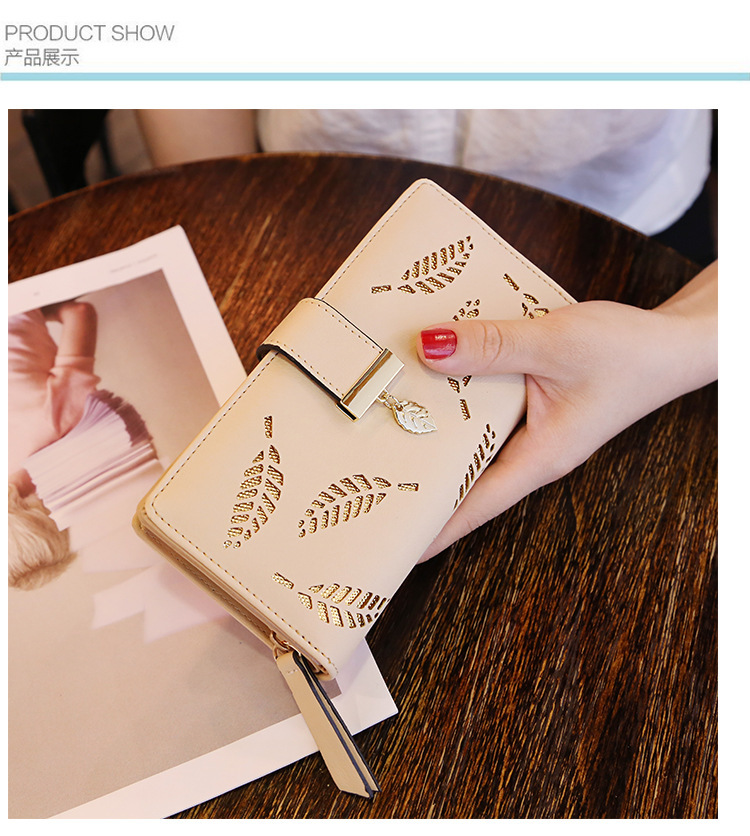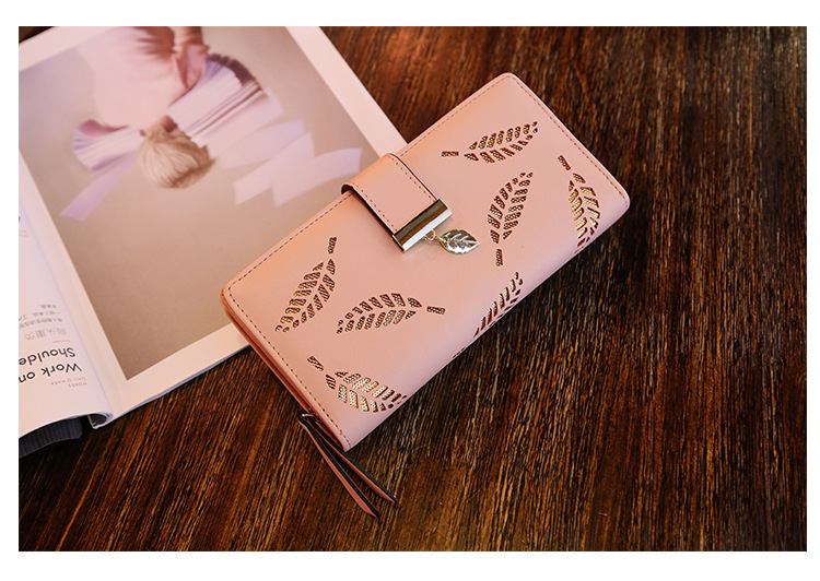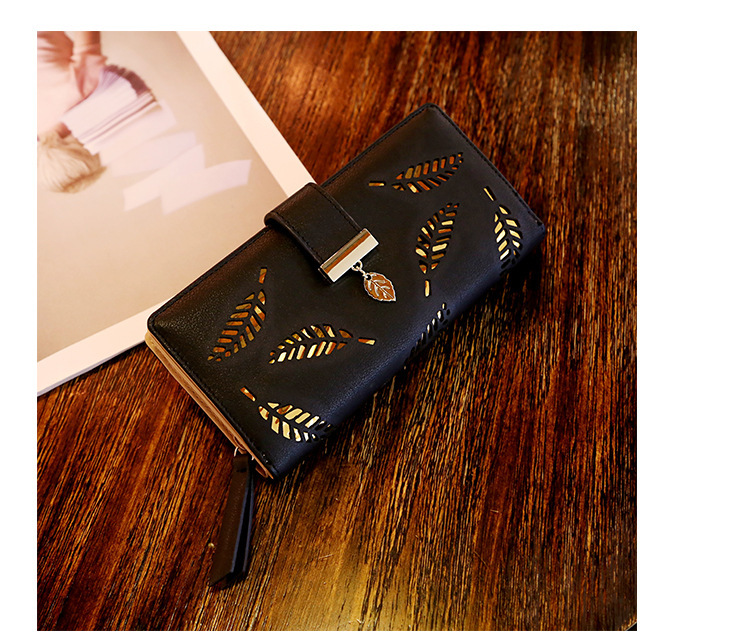 국경 간 여성용 지갑 스위트 레이디 PU 가죽 수평 지퍼 가방 소녀의 긴 휴대용 중공 잎 동전 지갑스토어 가기