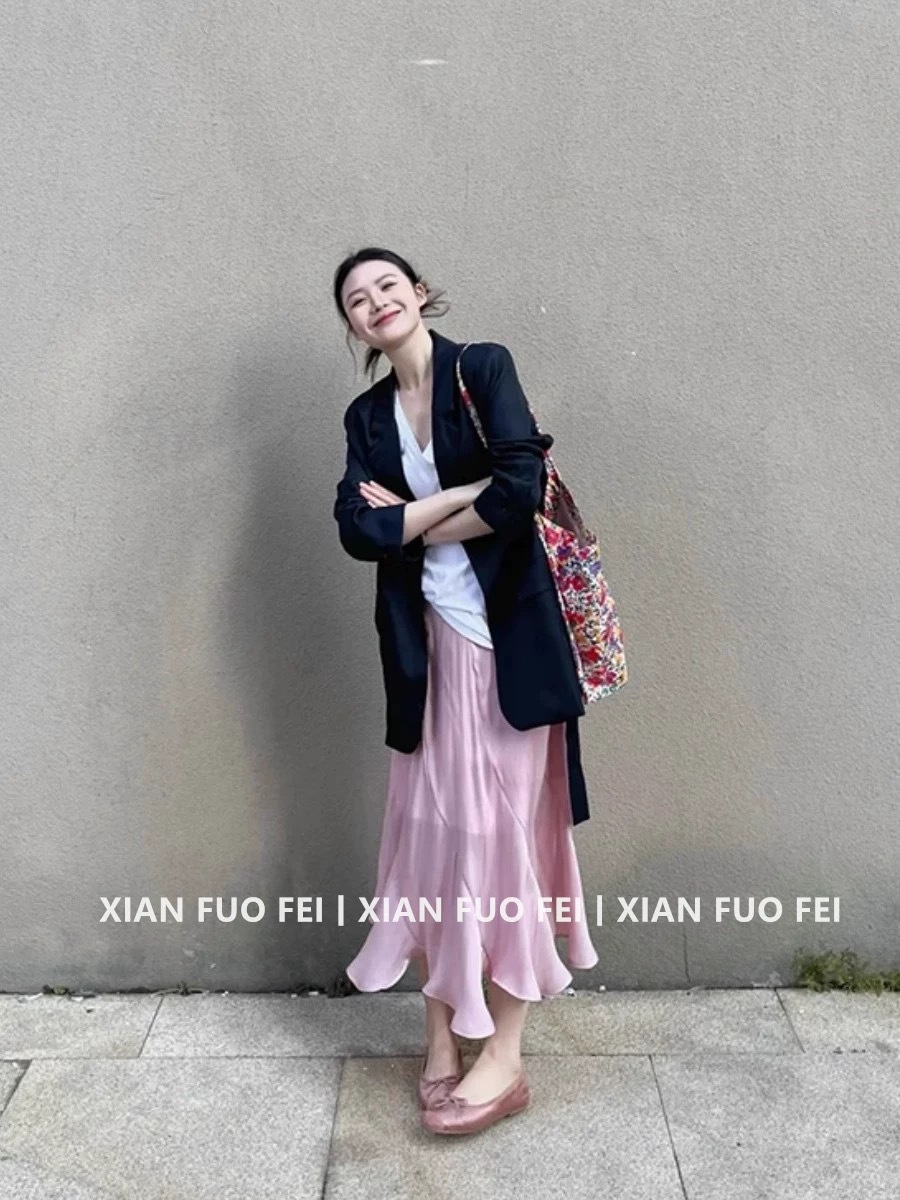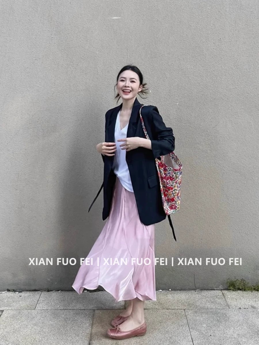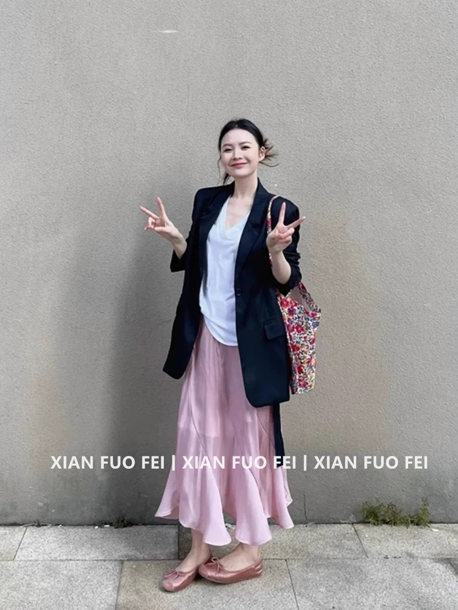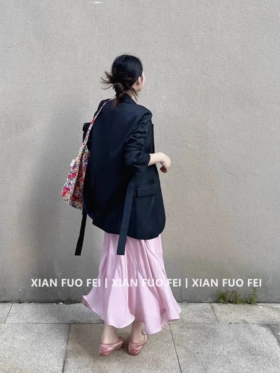 • 블랙 수트 재킷 + 핑크 피쉬테일 스커트 (고품질)