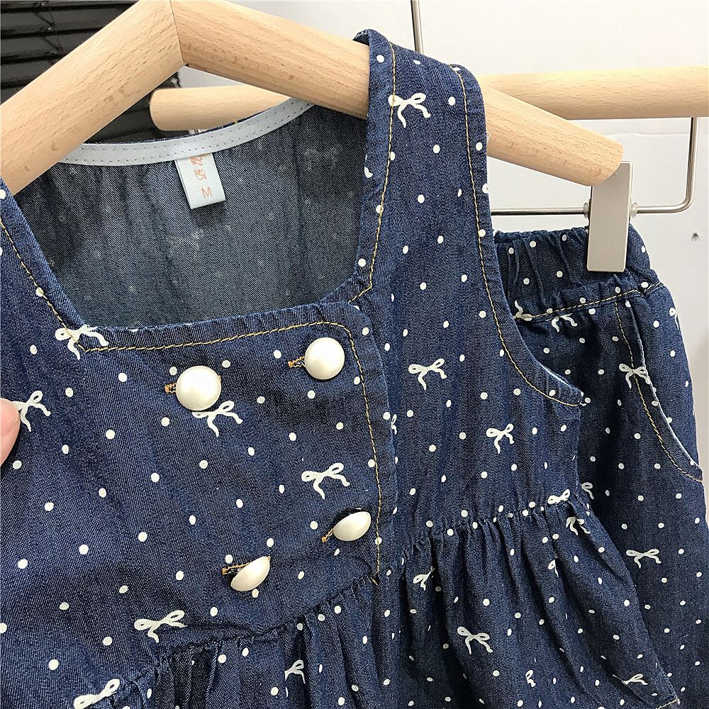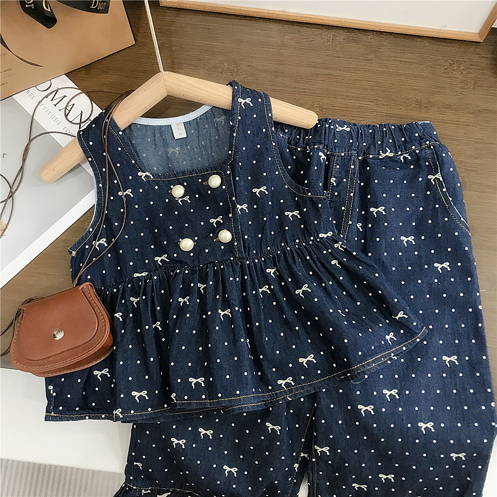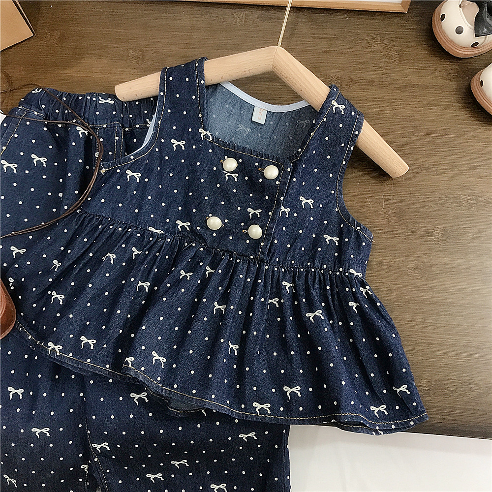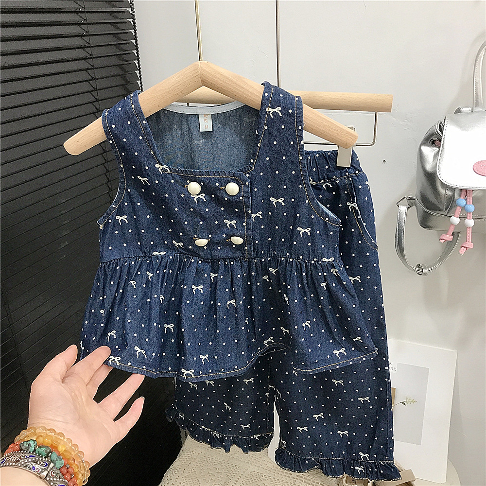 여자 세트 여름 새로운 유행 서양식 아기 여름 어린이 착용 얇은 데님 조끼 2 피스 세트 대외 무역스토어 가기