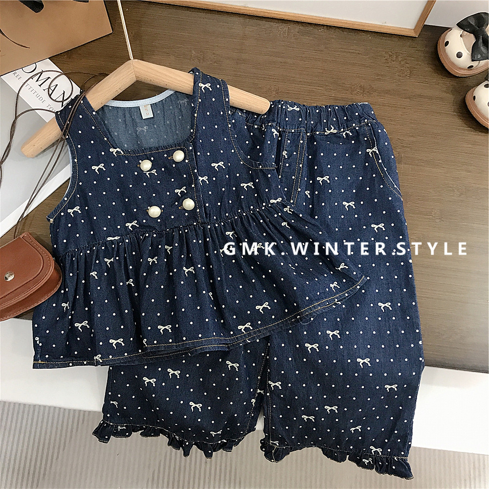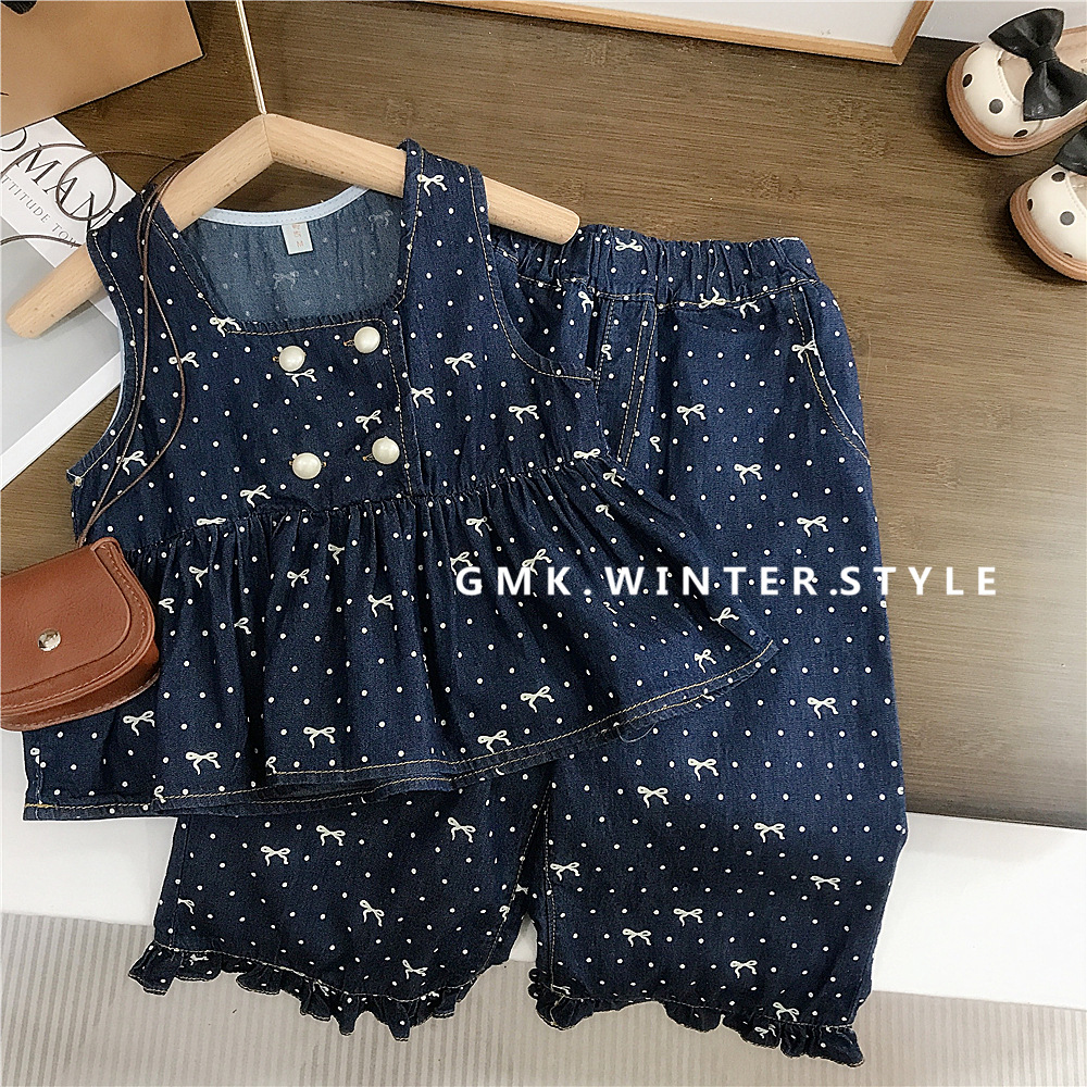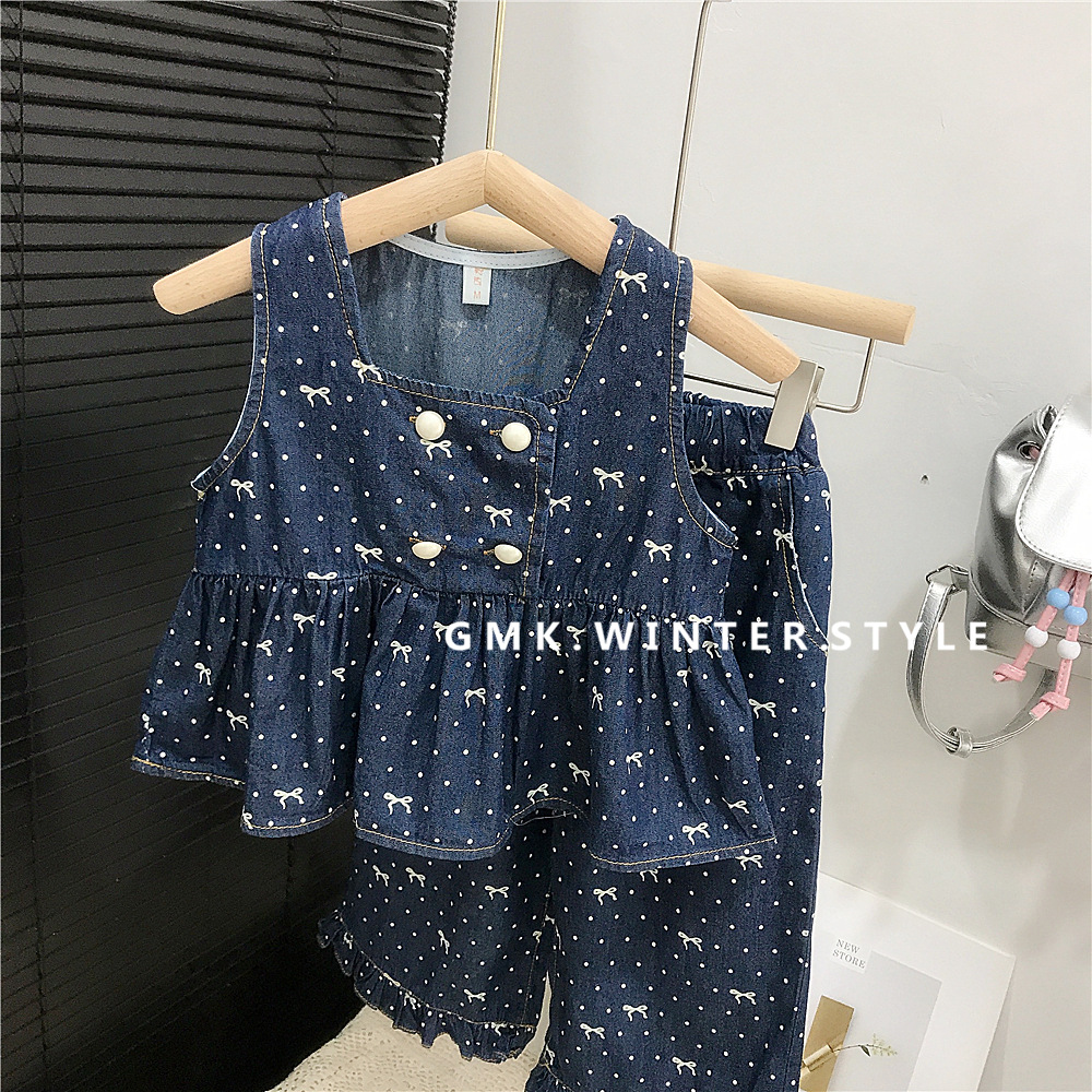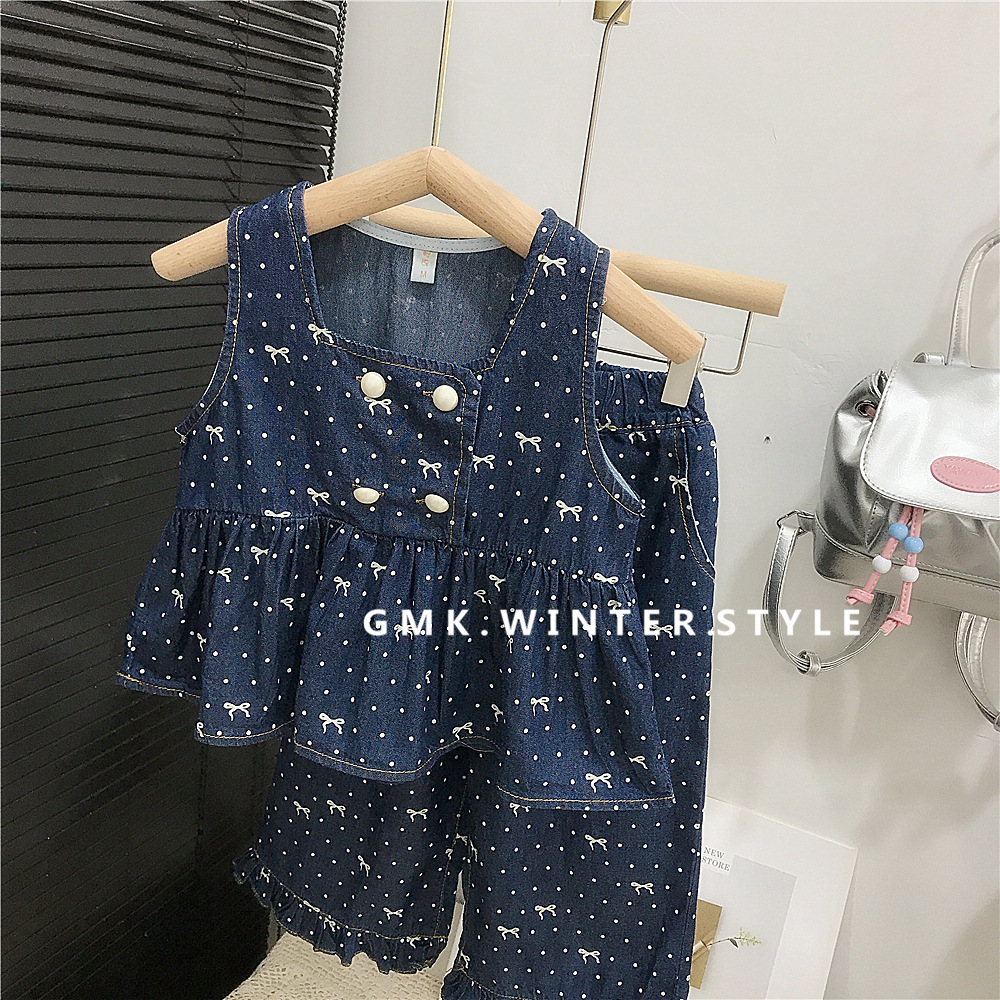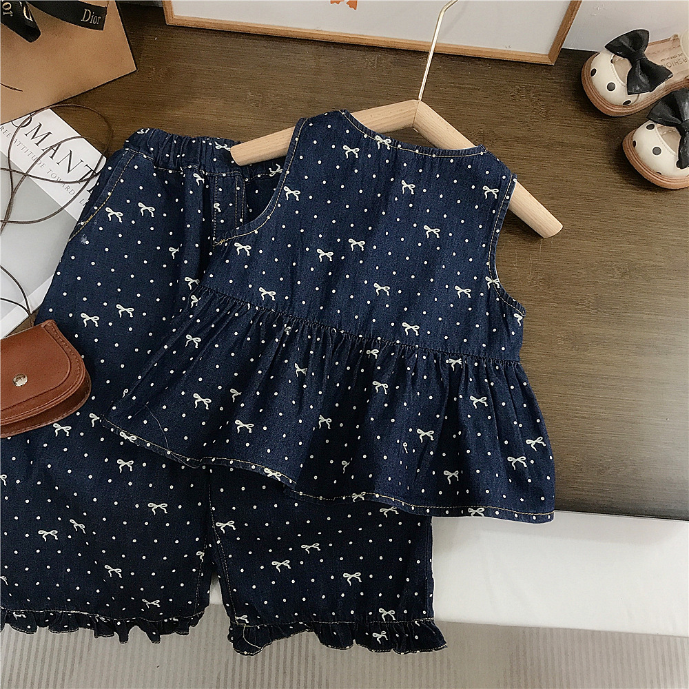 여자 세트 여름 새로운 유행 서양식 아기 여름 어린이 착용 얇은 데님 조끼 2 피스 세트 대외 무역스토어 가기