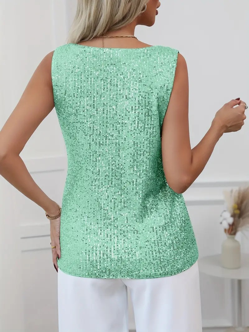 국경 간 유럽과 미국의 반짝이는 조끼 새로운 여성 스팽글 민소매 탑 아마존 v 넥 섹시한 바닥 셔츠 탑
