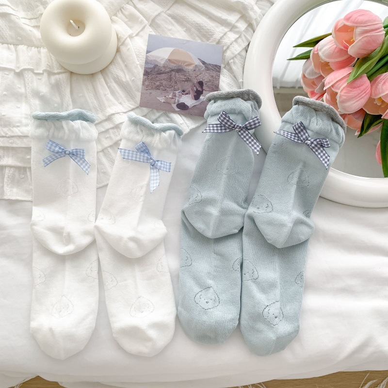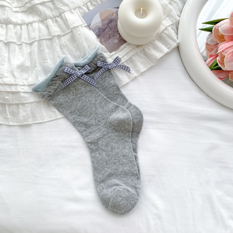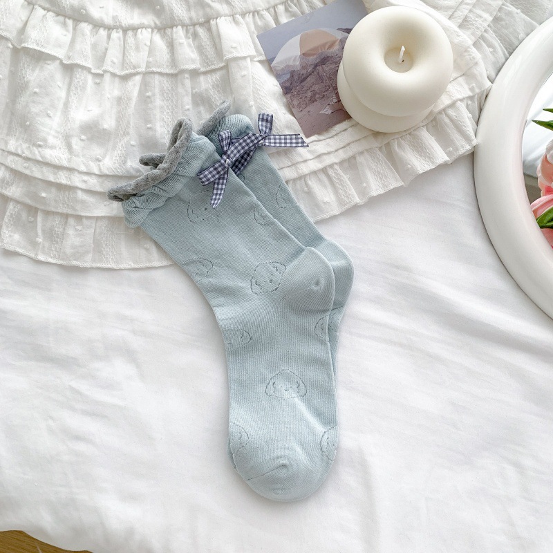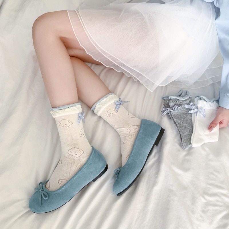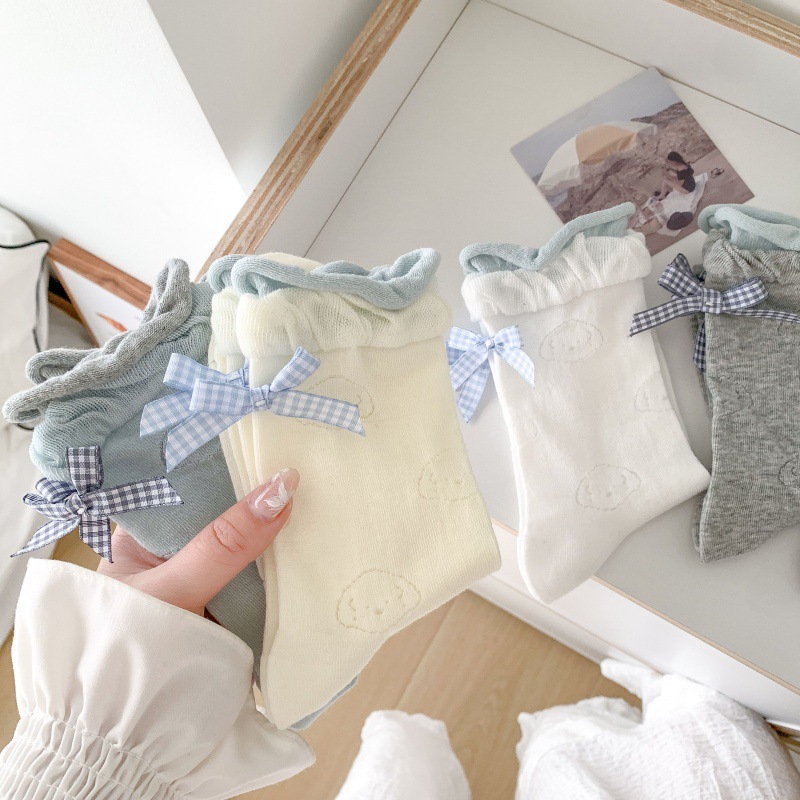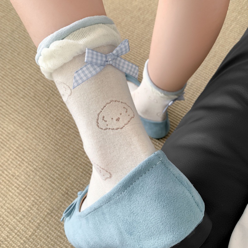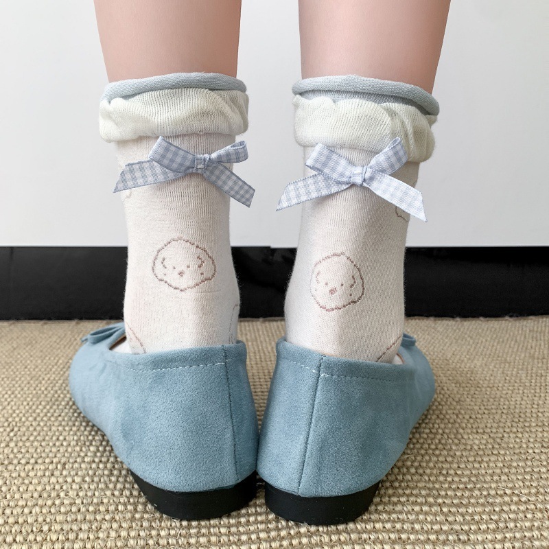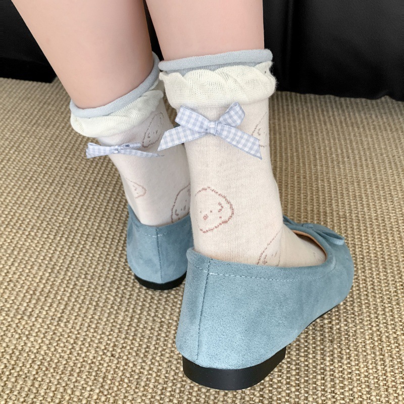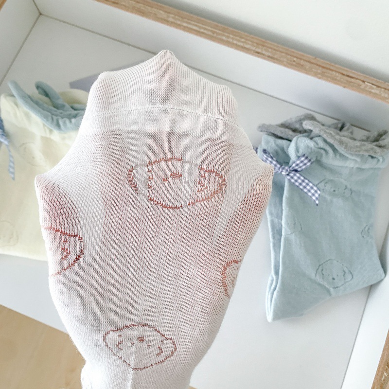 봄 여름 어린이를위한 힐 활 중간 튜브 스택 양말 얇은 어두운 패턴 강아지 한국 스타일 Ins 스타일 더블 레이스 양말스토어 가기