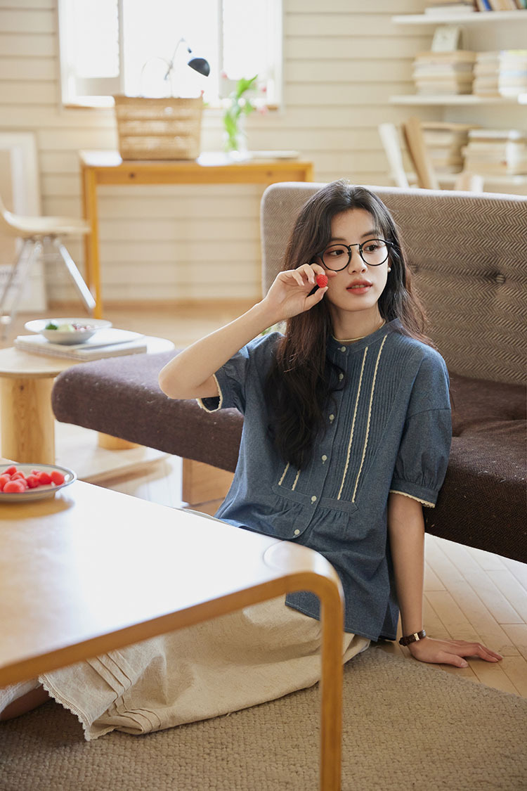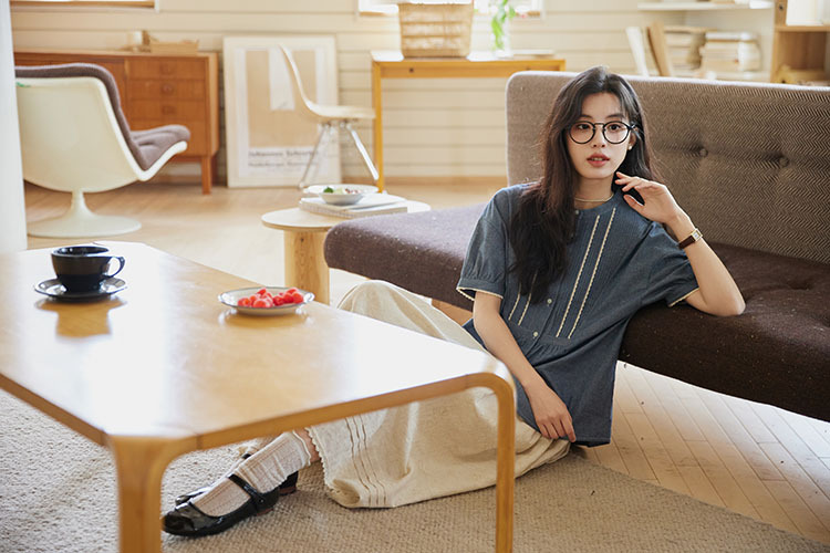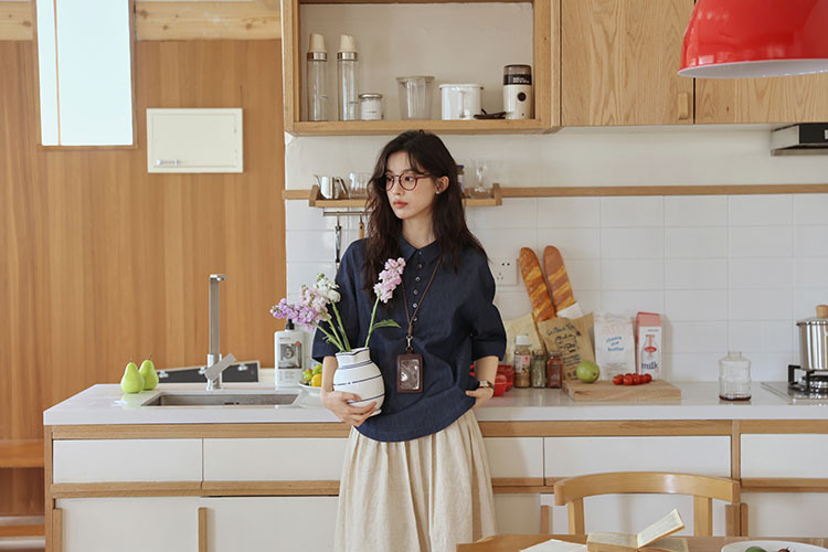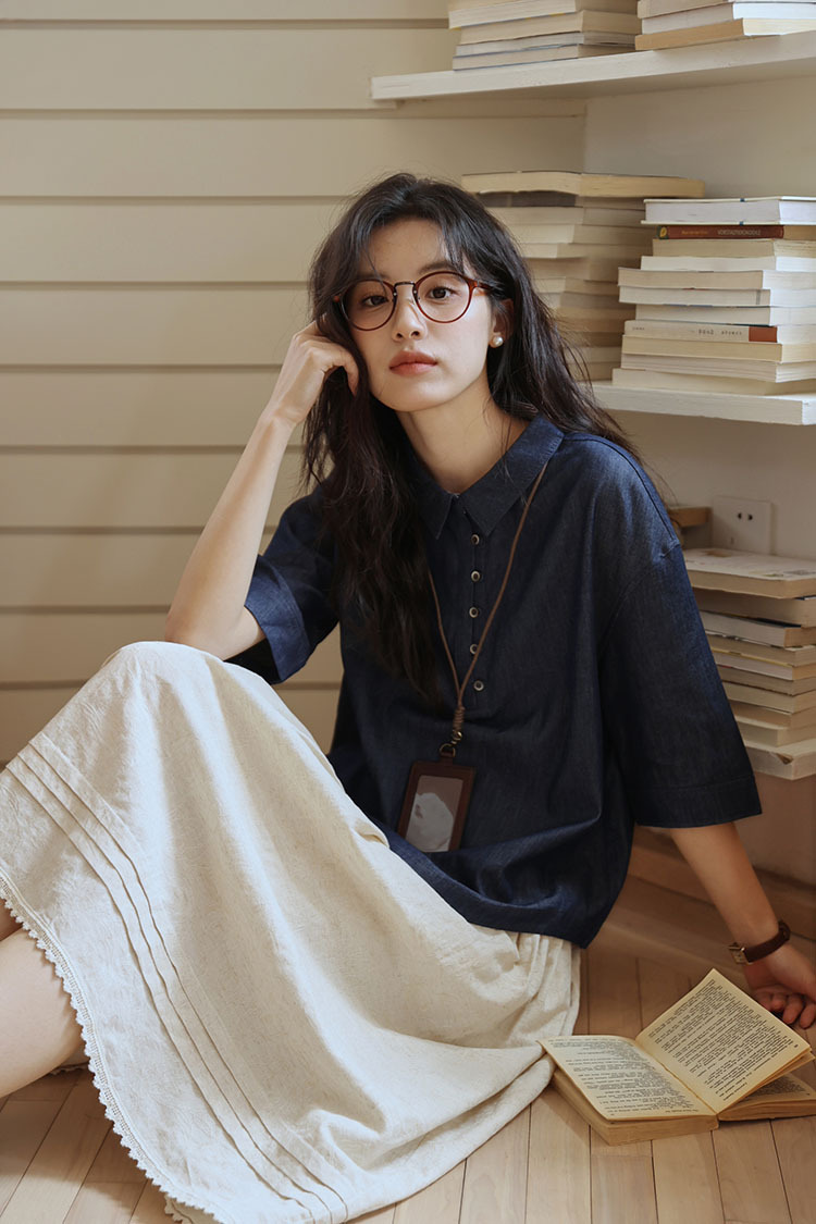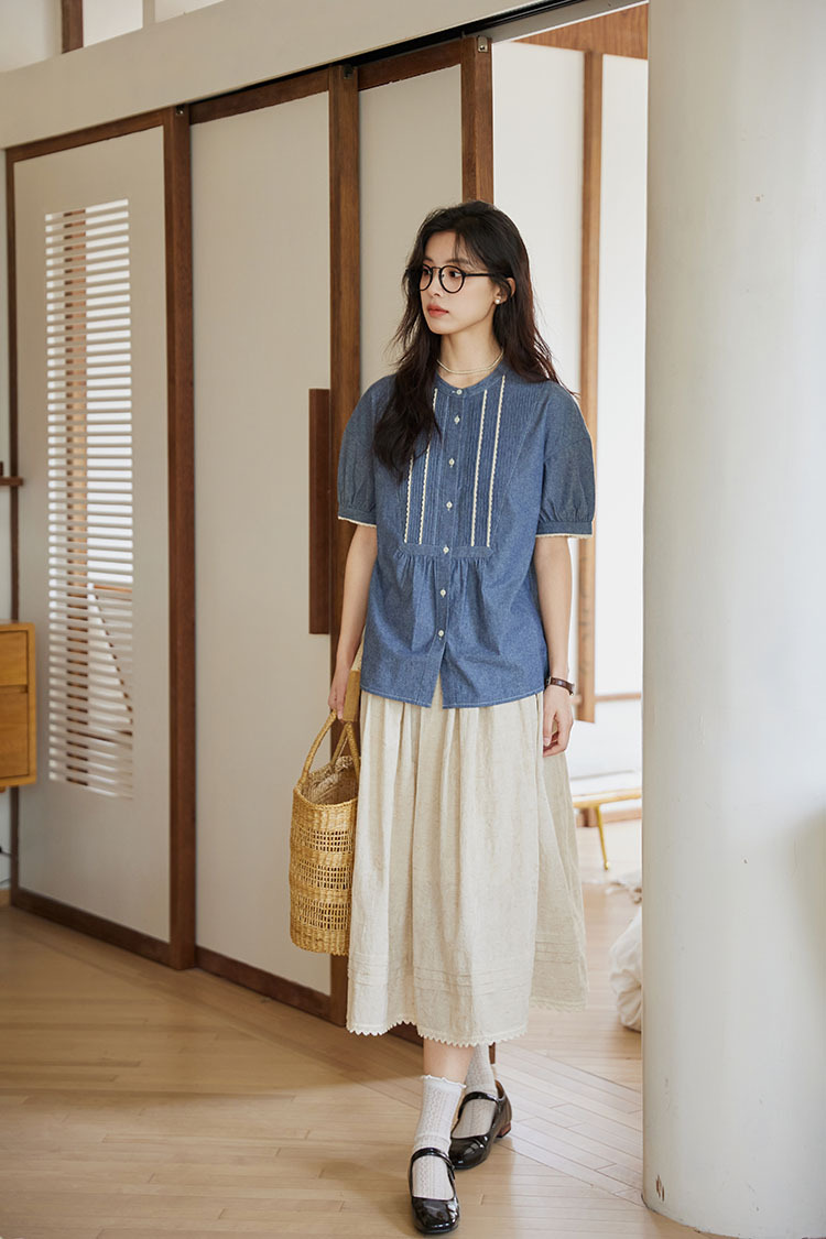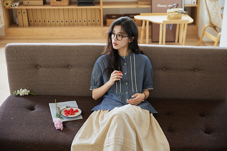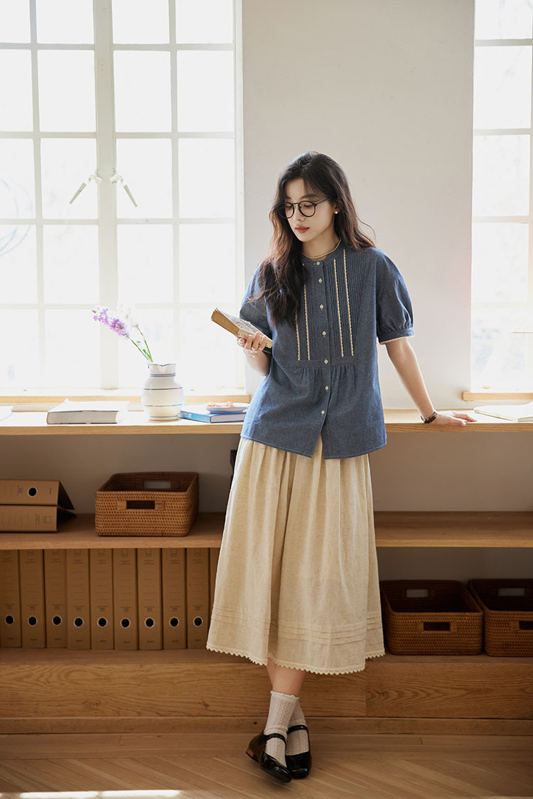 리얼 샷 2025 여름 일본 문학 및 예술적 작은 신선한 살구색 코드와 린넨 스커트 여성의 긴 A 라인 스커트