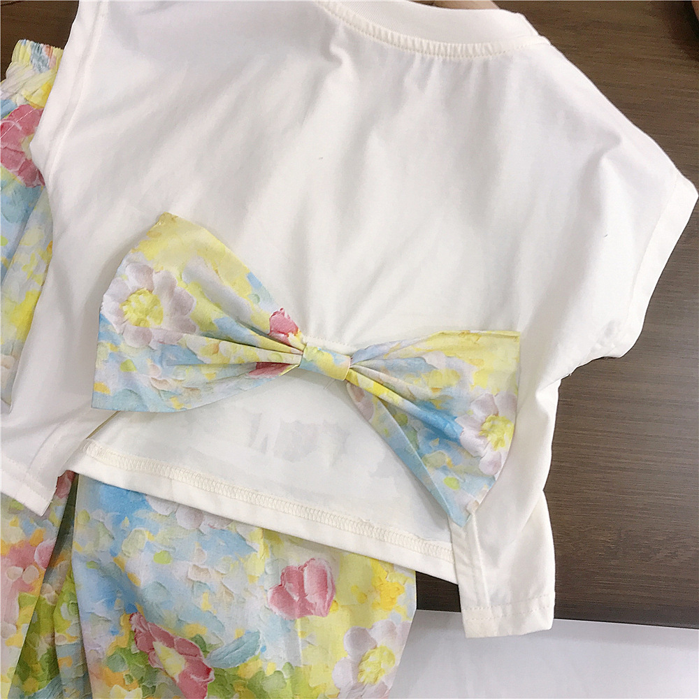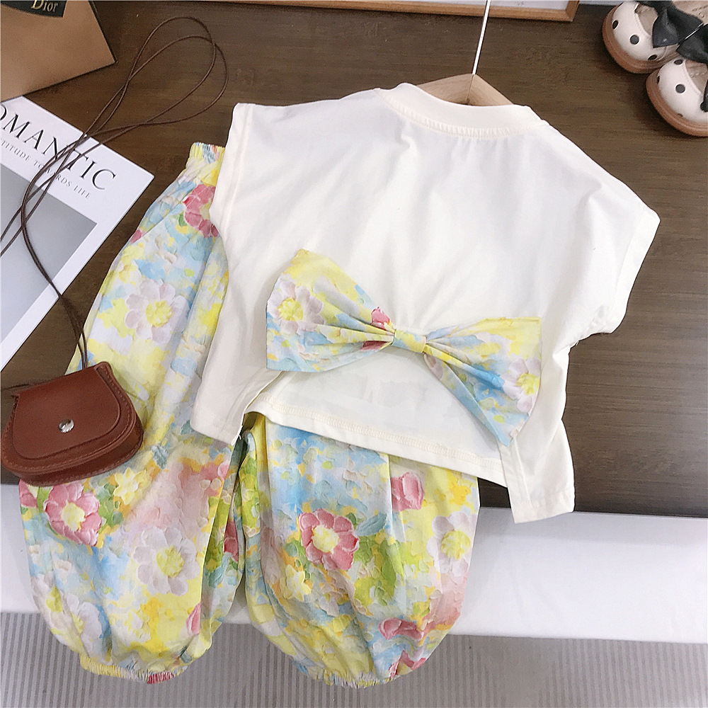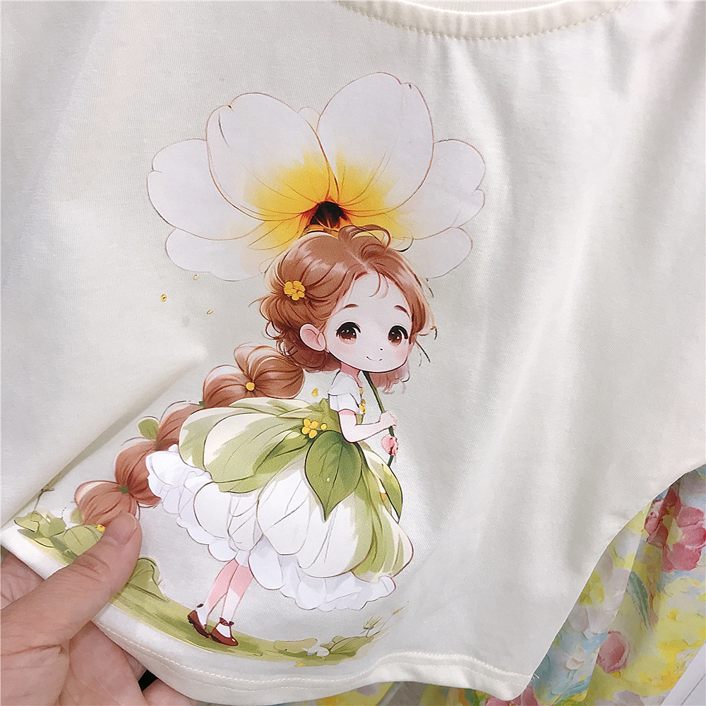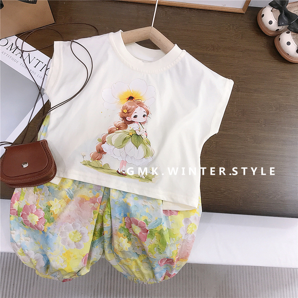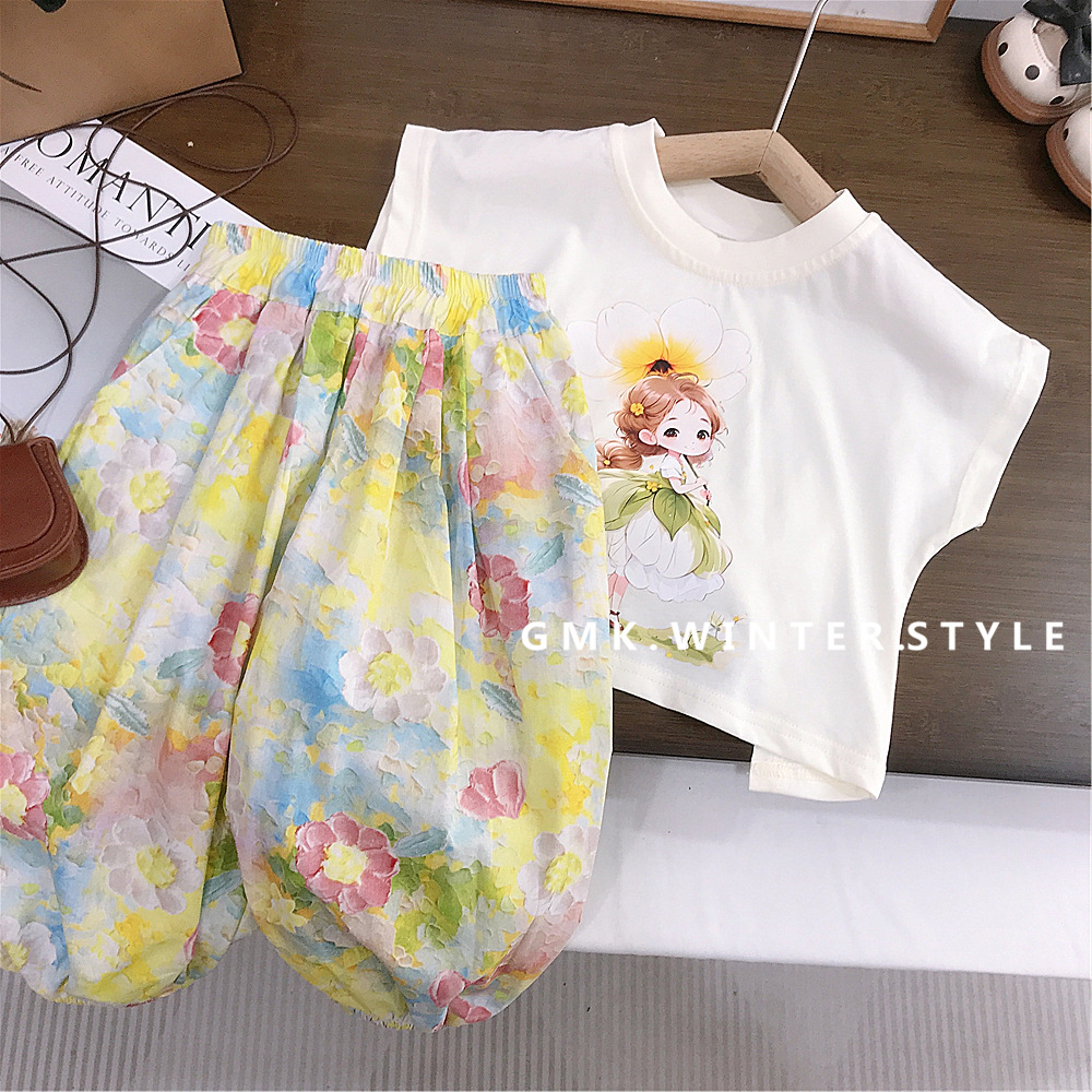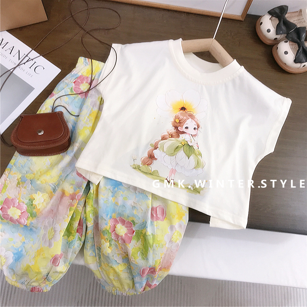 소녀 세트 여름 새로운 유행 만화 소녀 인쇄 최고 캐주얼 올 매치 바지 2 피스 세트 대외 무역스토어 가기