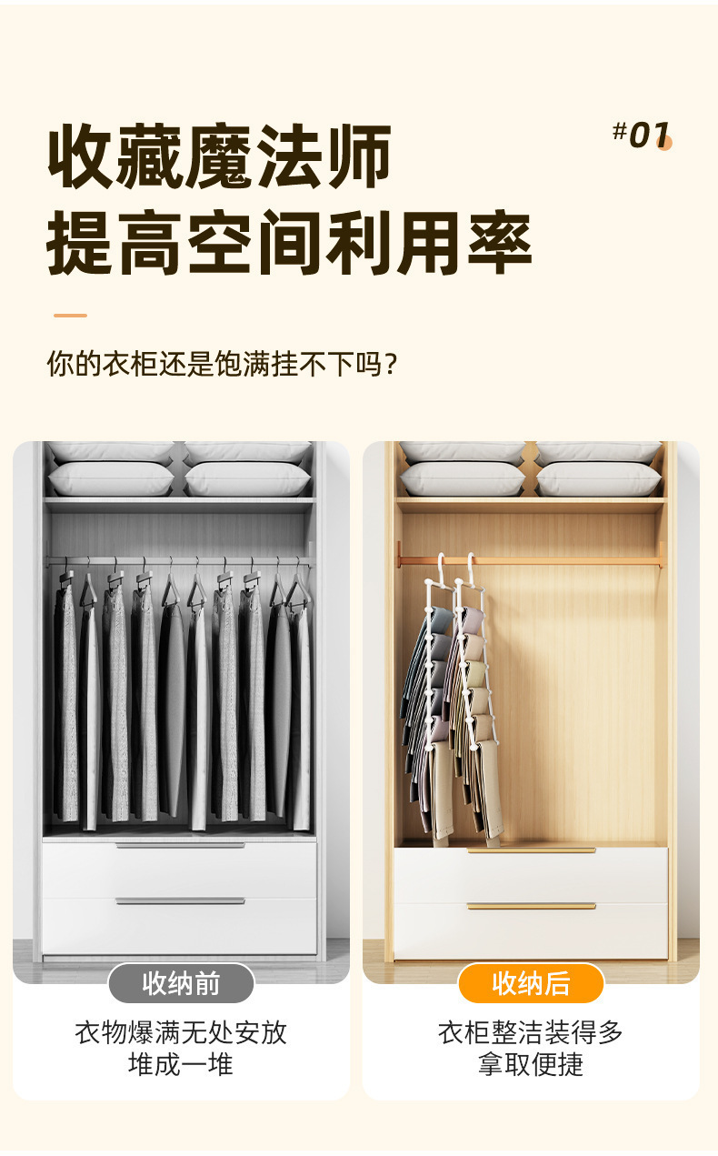 • [스테인리스 스틸 5극 박스] 바지 4벌 걸 수 있음 - 공간 절약 4배