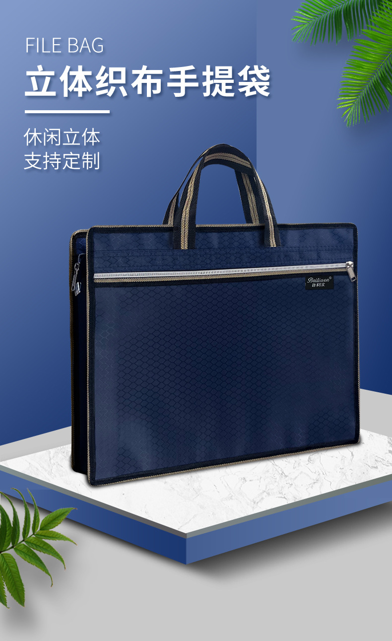 Bailiwen H136 블루 핸드백 문서 가방 지퍼 서류 가방 핸드백 정보 가방 사무실스토어 가기