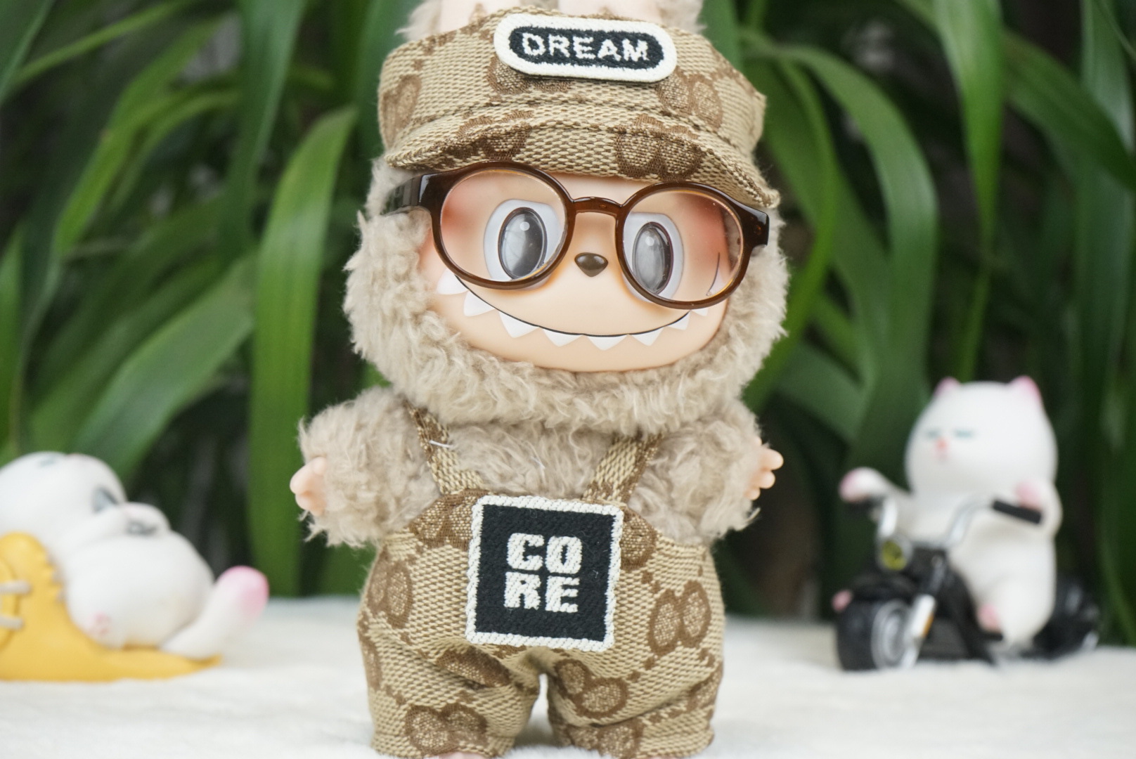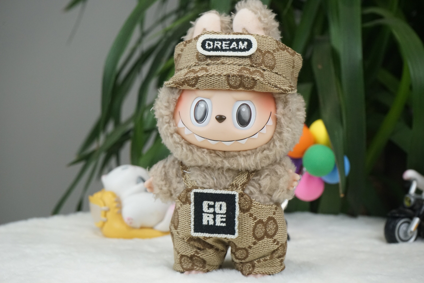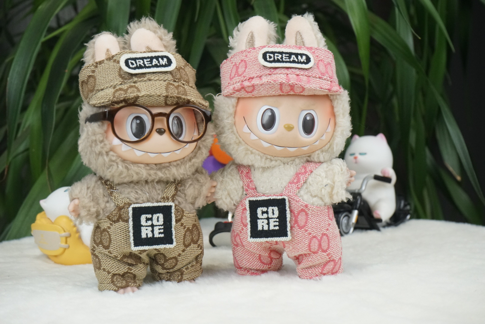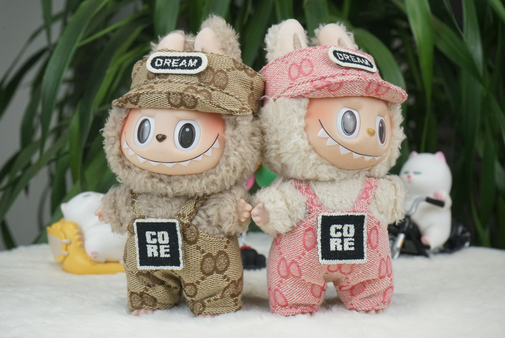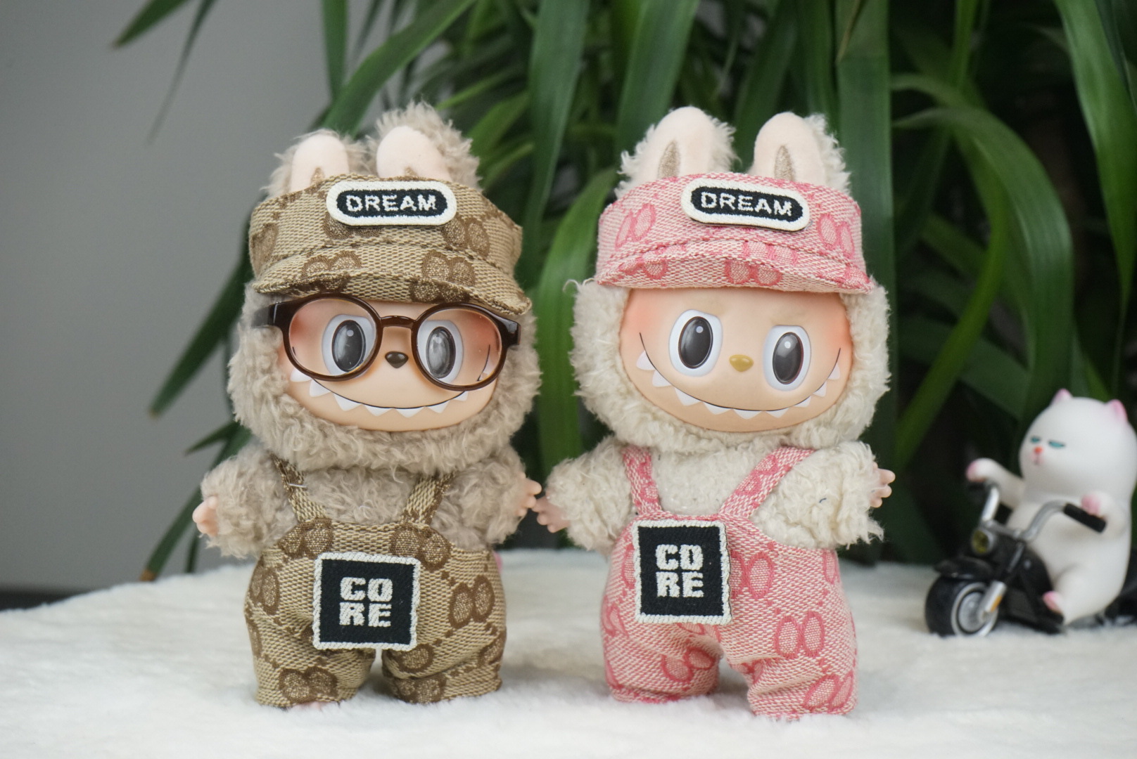Labubu 옷 17cm Labubu 인형 코트 다크 브라운 핑크 명암 컬러 벨트 바지 세트 인형 트렌디 한 놀이 착용스토어 가기