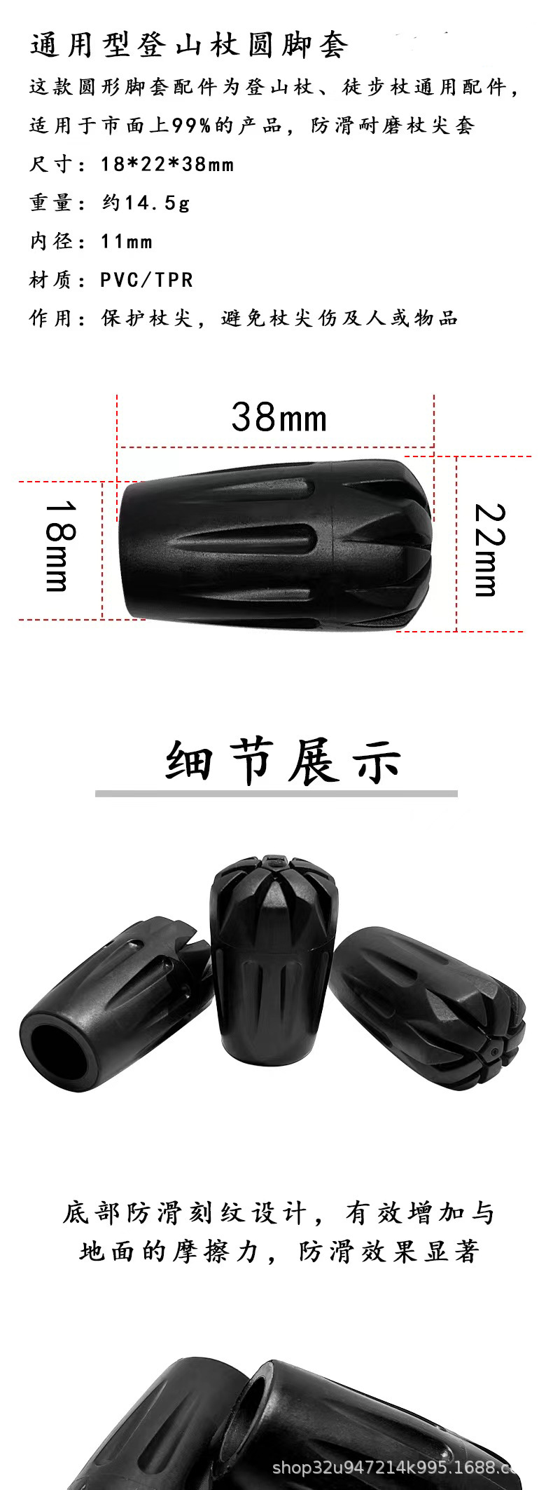 트레킹 스틱 액세서리 미끄럼 방지 고무 슬리브 트레킹 스틱 충격 흡수 내마모성 총알 발 커버 보호 발 커버 액세서리 S3스토어 가기