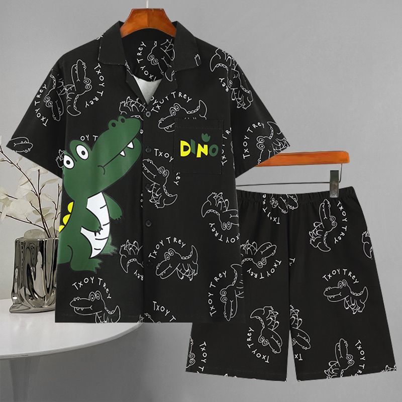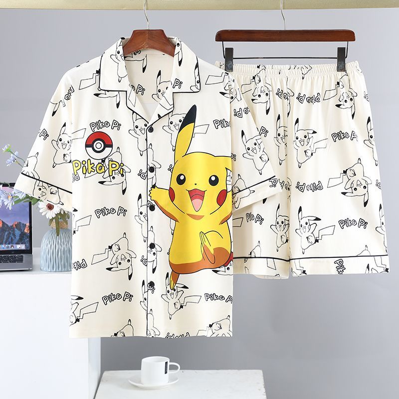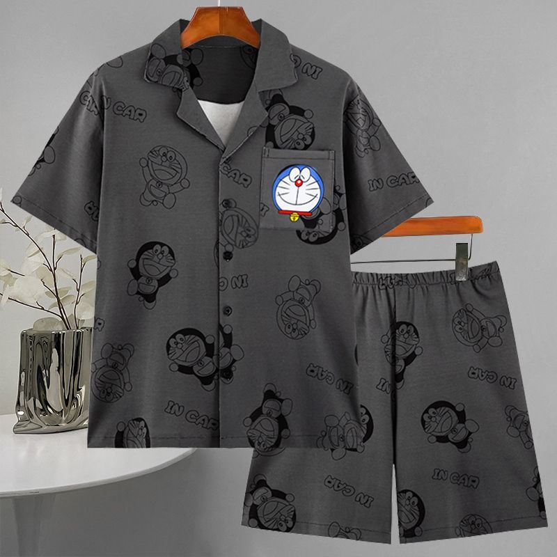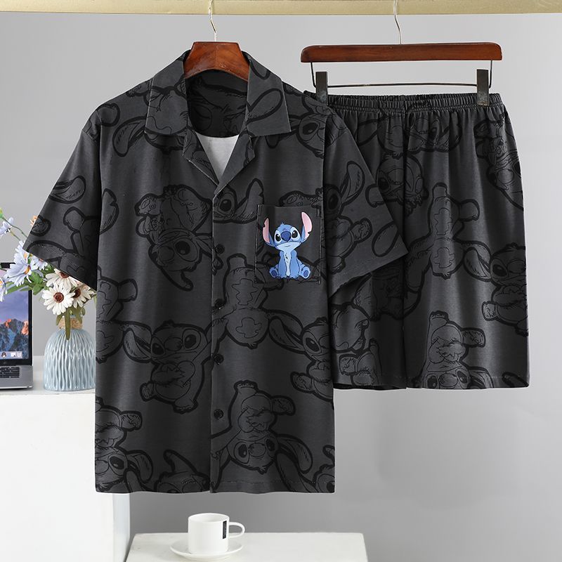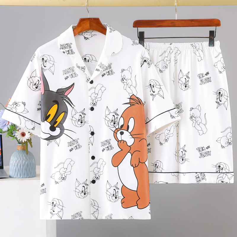 여름 반팔 잠옷 남성 카디건 만화 청소년 플러스 사이즈 플러스 사이즈 반바지 남성 잠옷 홈웨어 세트스토어 가기