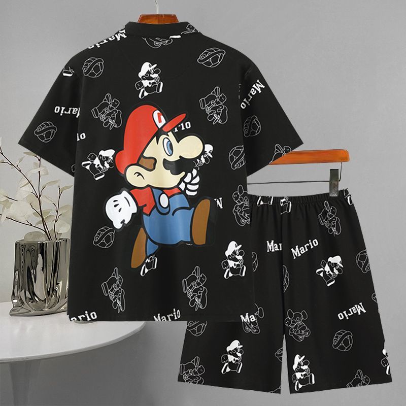 여름 반팔 잠옷 남성 카디건 만화 청소년 플러스 사이즈 플러스 사이즈 반바지 남성 잠옷 홈웨어 세트