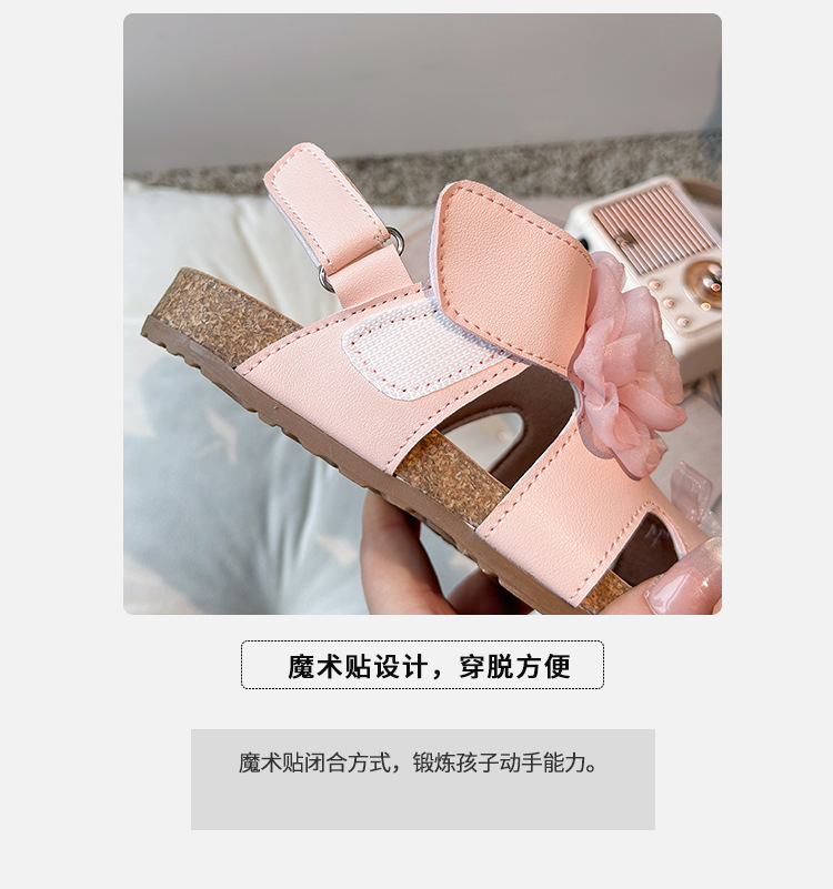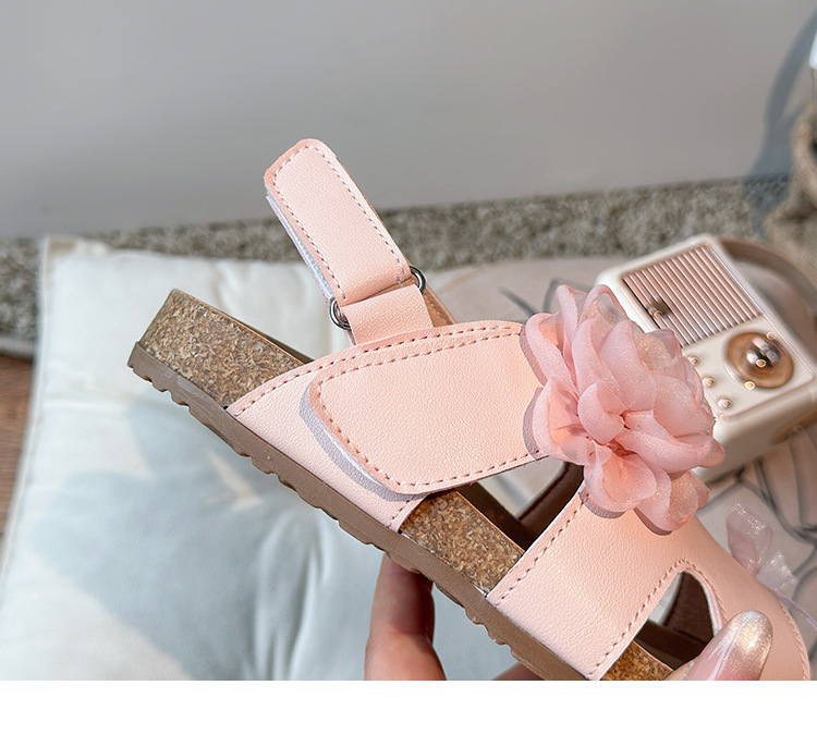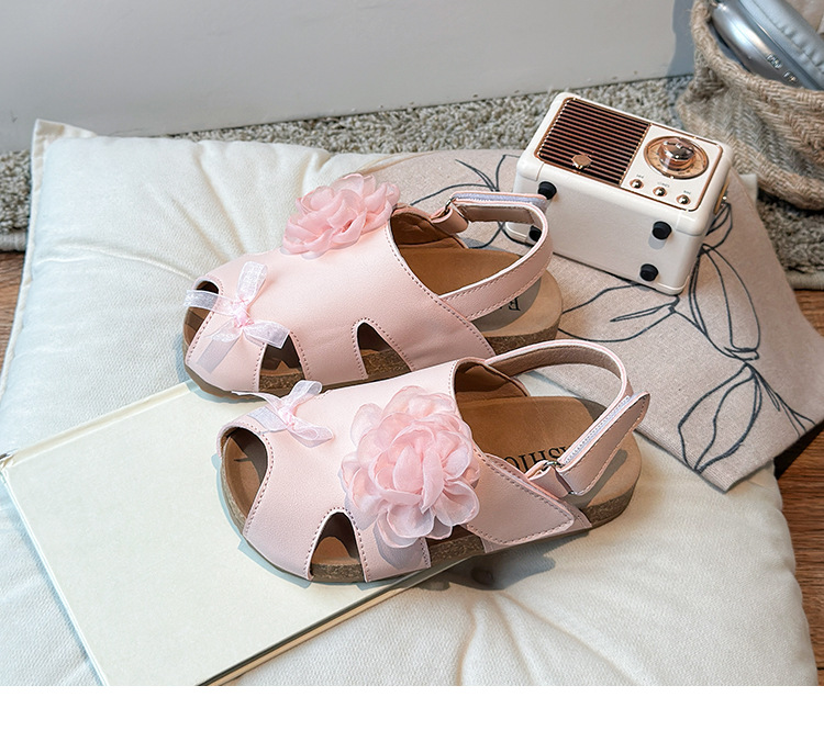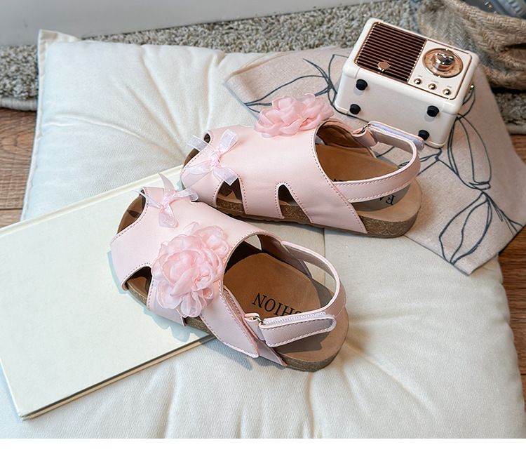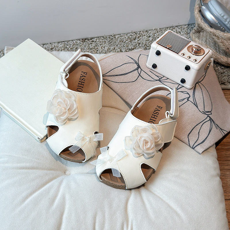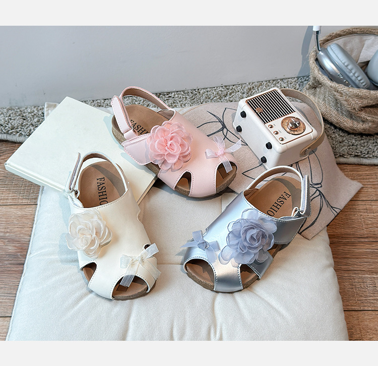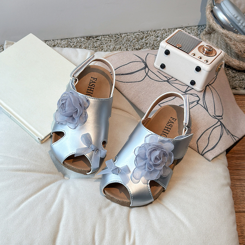 2025 봄과 여름 새로운 여자 어린이 패션 꽃 샌들 한국어 스타일 공주 부드러운 바닥 비치 신발 어린이 신발 도매