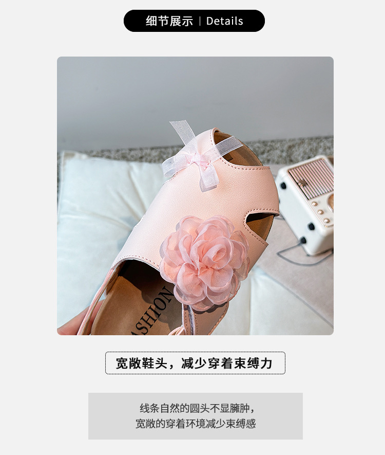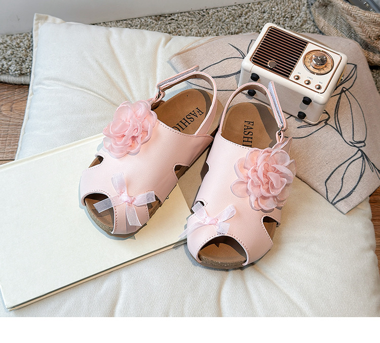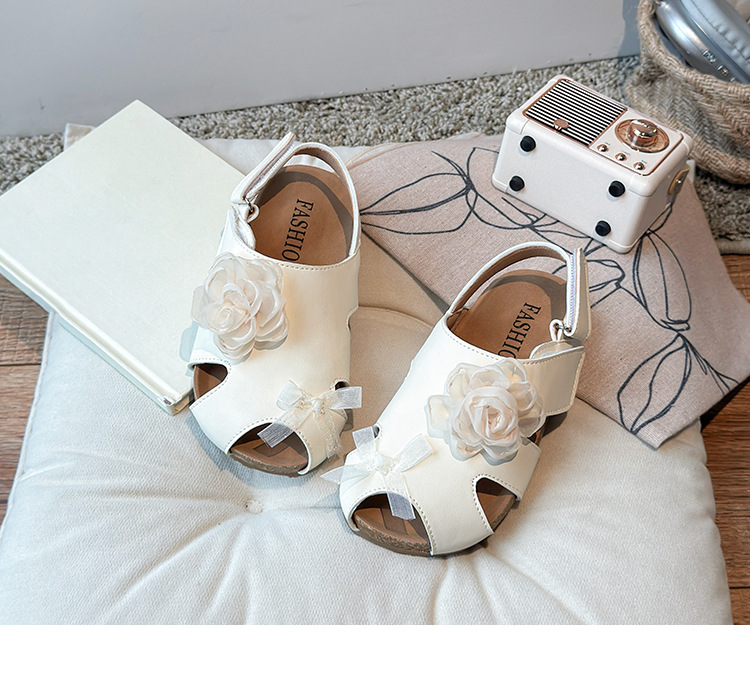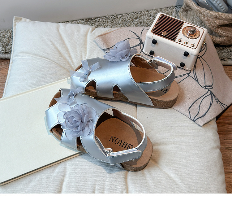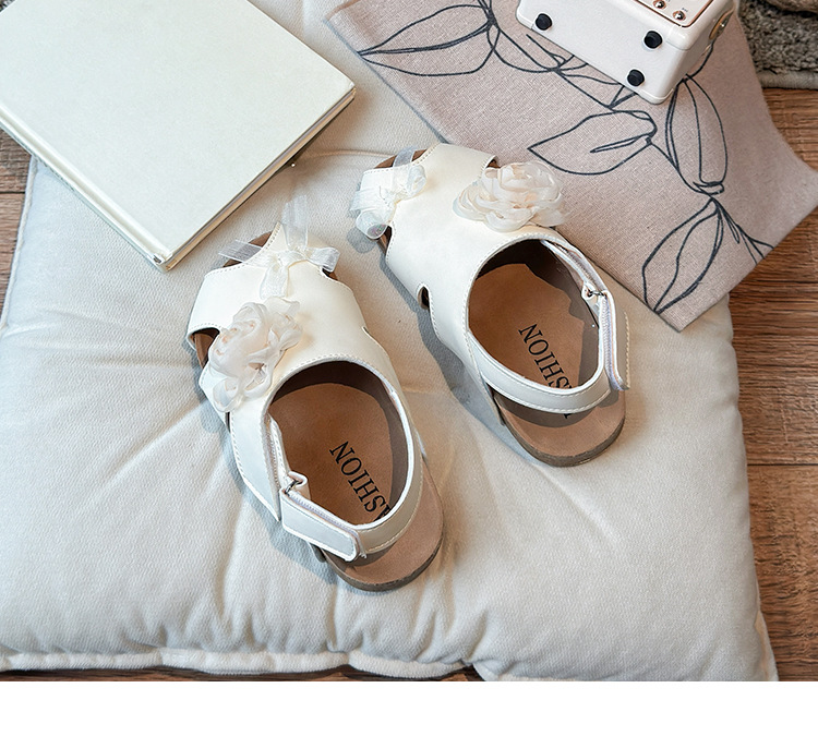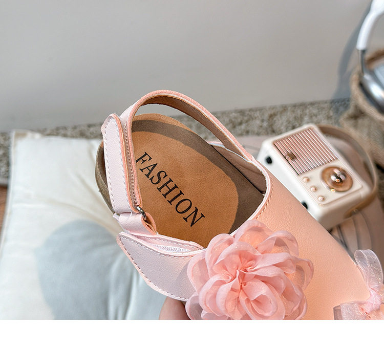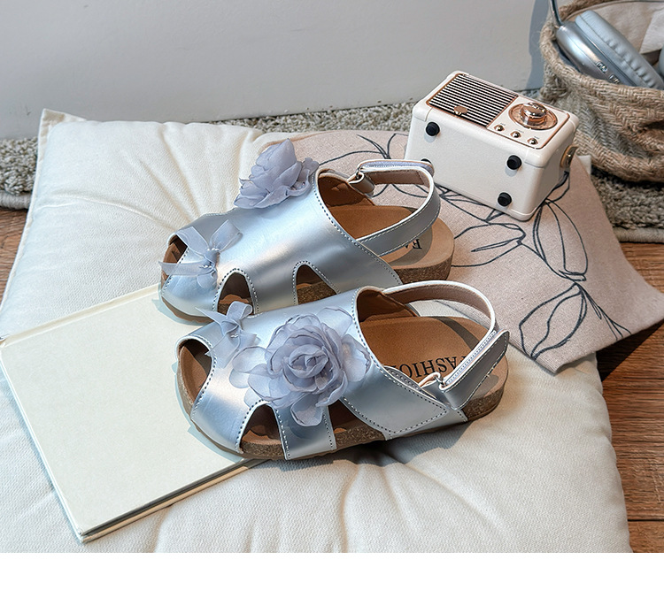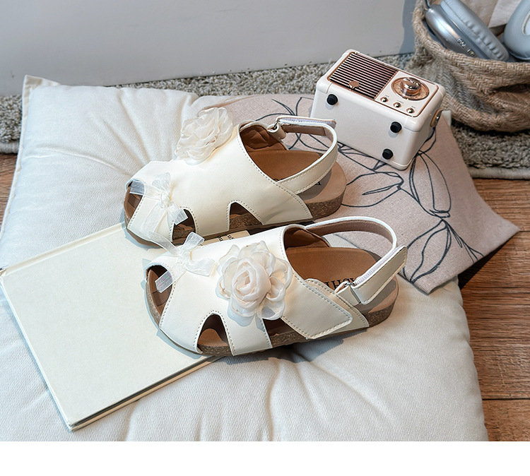 2025 봄과 여름 새로운 여자 어린이 패션 꽃 샌들 한국어 스타일 공주 부드러운 바닥 비치 신발 어린이 신발 도매