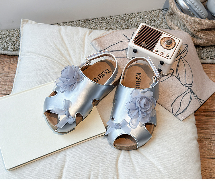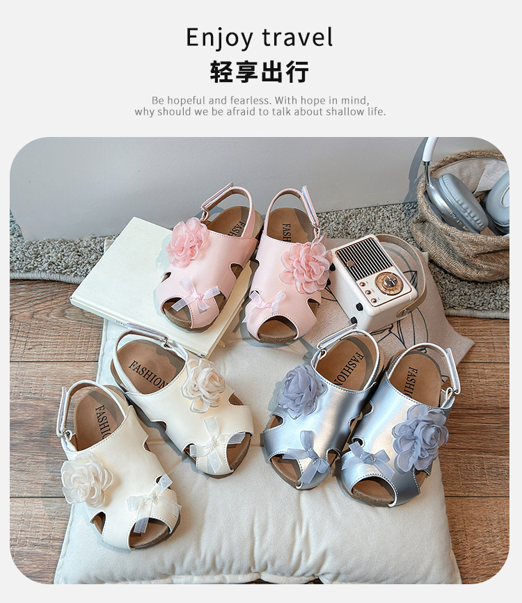 2025 봄과 여름 새로운 여자 어린이 패션 꽃 샌들 한국어 스타일 공주 부드러운 바닥 비치 신발 어린이 신발 도매스토어 가기