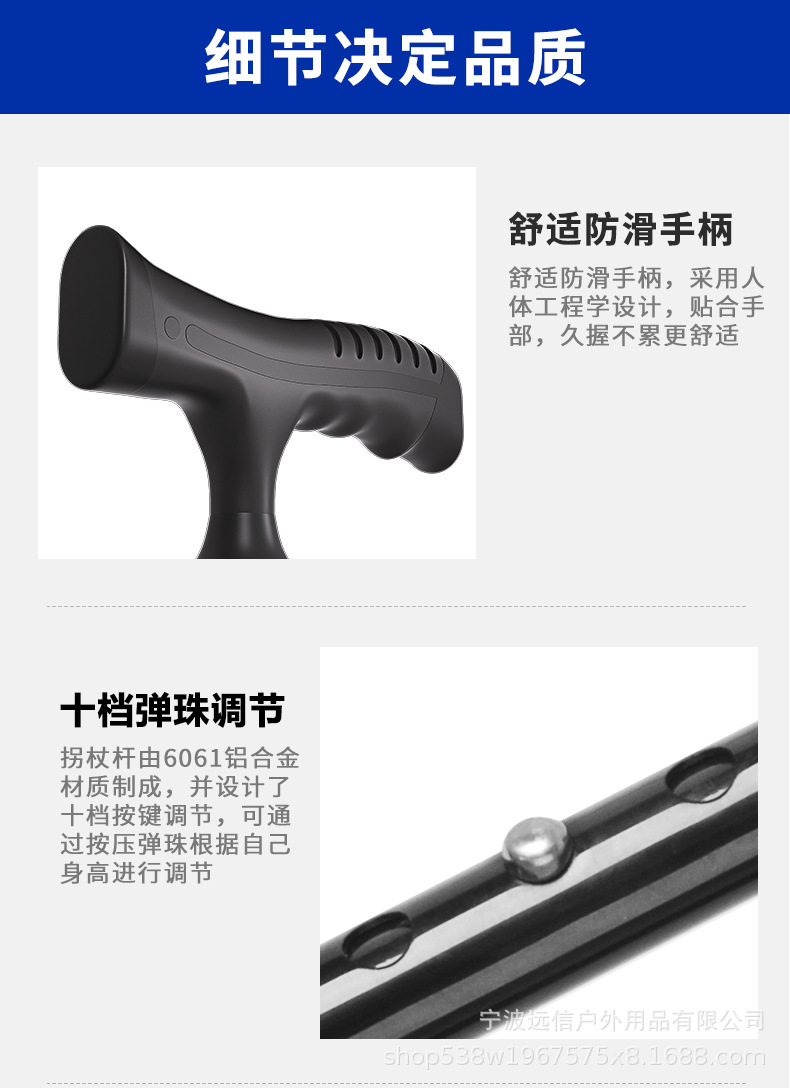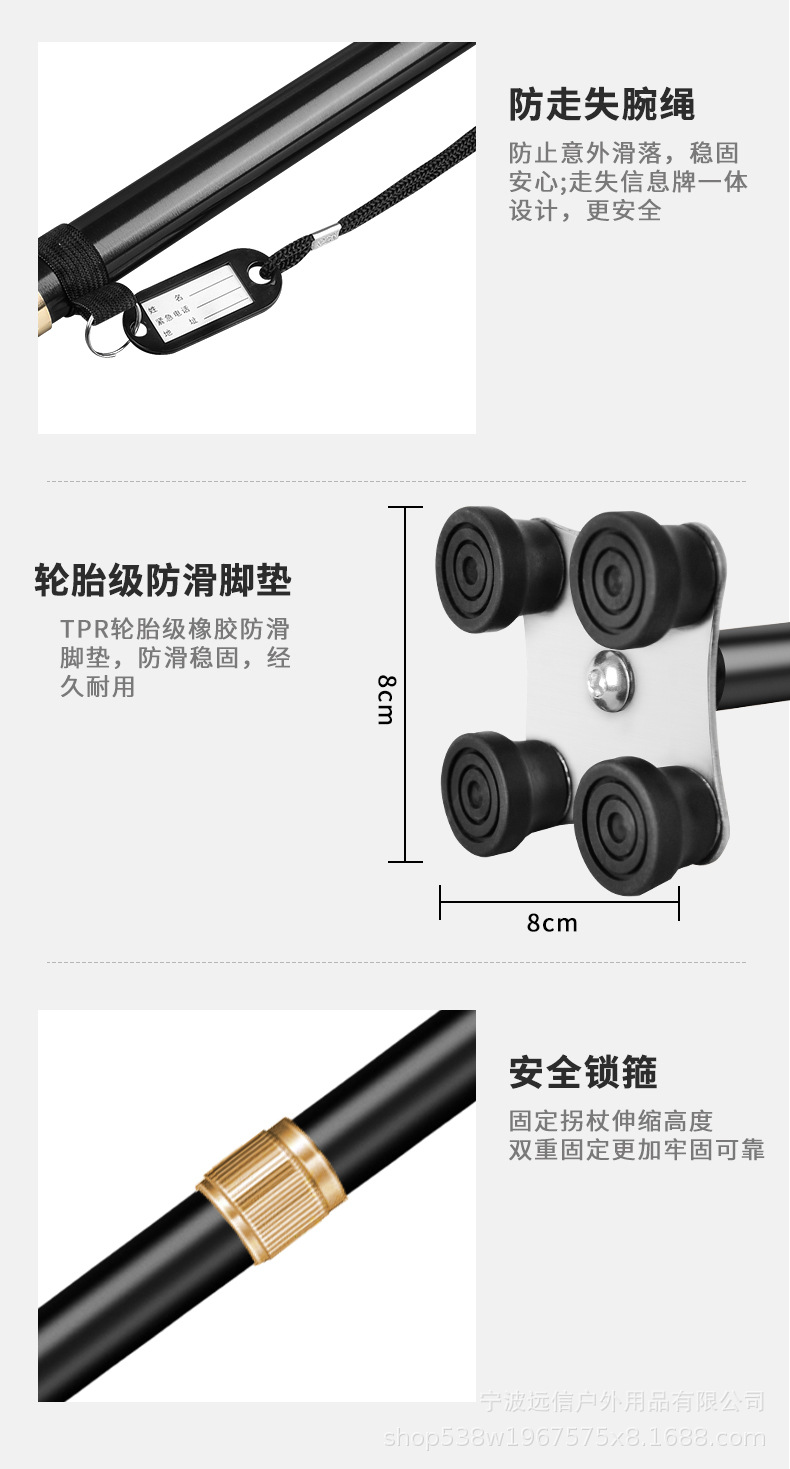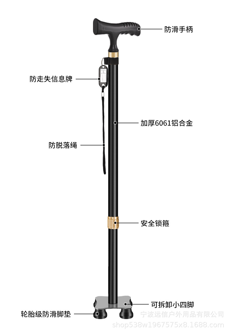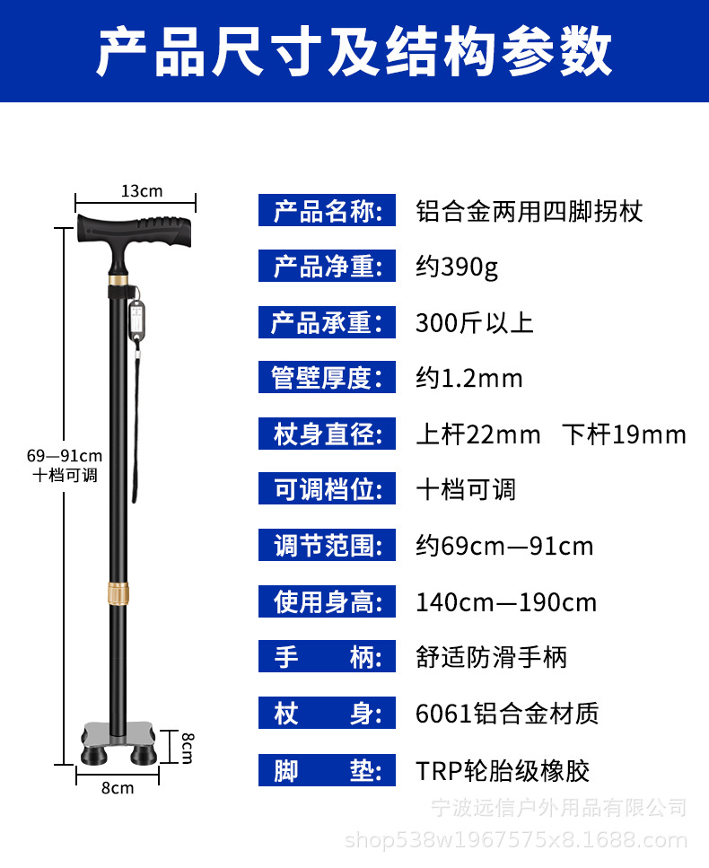 노인을 위한 알루미늄 합금 지팡이, 고무 처리된 단일 발 고정 4개의 다리 이중 목적 지팡이, 길이 조절 가능한 지팡이스토어 가기