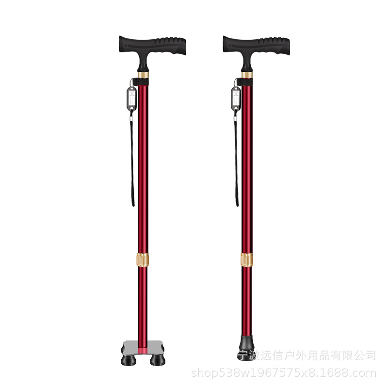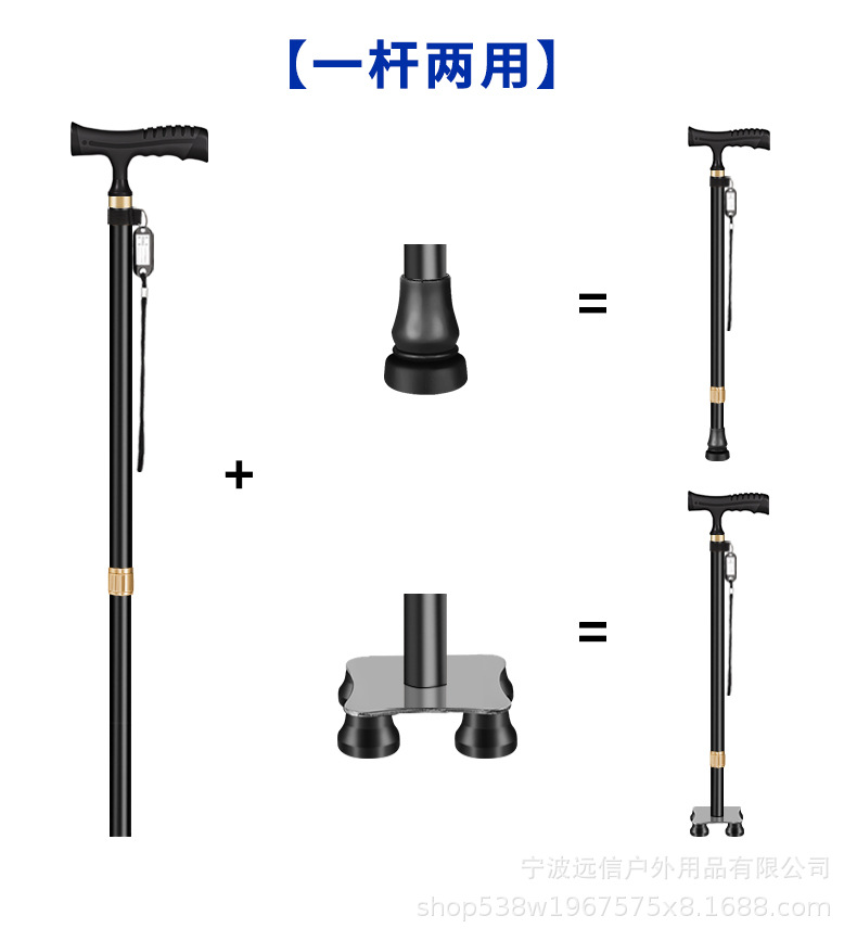 노인을 위한 알루미늄 합금 지팡이, 고무 처리된 단일 발 고정 4개의 다리 이중 목적 지팡이, 길이 조절 가능한 지팡이